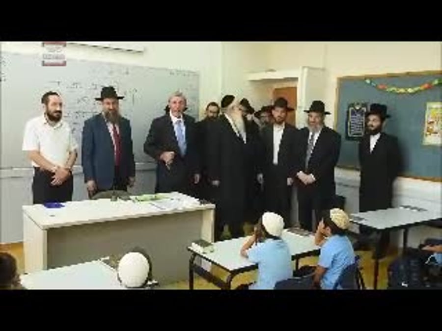 שר החינוך, הרב רפי פרץ וסגנו, מאיר פרוש עם בכירי המשרד, פתחו את שנת הלימודים בתלמוד תורה בני מנחם חב"ד חולון.