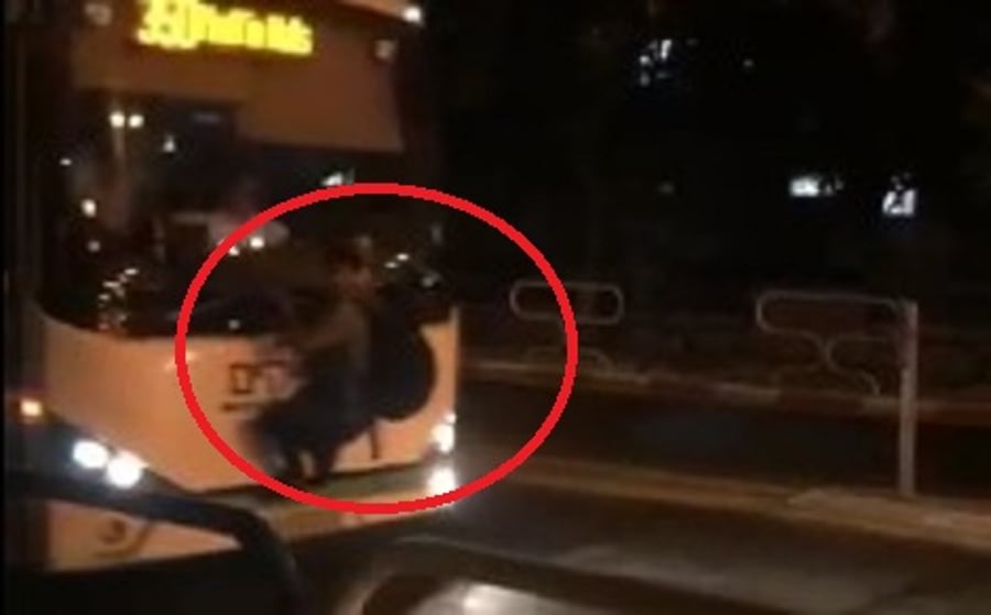 מפחיד: האוטובוס נוסע - עם צעיר חרדי תלוי עליו