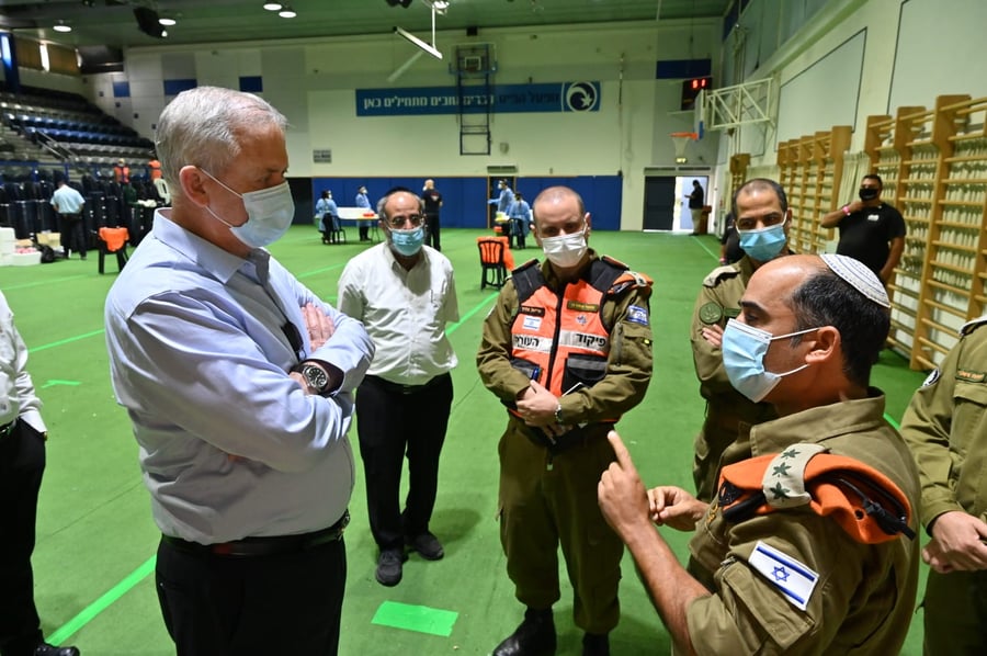 במהלך הביקור קיבל שר הביטחון סקירה במתחם בדיקות ללא צורך בהפניה שמופעל על ידי מד"א ופיקוד העורף ועמד על שיתוף הפעולה מציל החיים בין הגופים ביחד עם עיריית בני ברק ומשרד הבריאות. ל