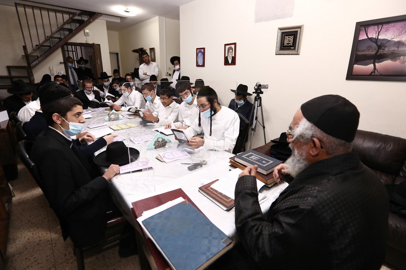 לאחר מכן ערך אחד הבחורים סיום על מסכת פסחים, תוך שירה וריקודים לכבודה של תורה ולרגל חג החנוכה.