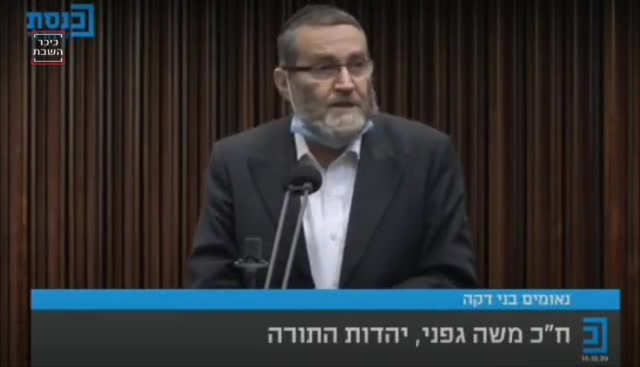 "אנחנו מדברים על כנסת במדינה יהודית ודמוקרטית, אני צריך לנסוע לבני ברק כדי להדליק נרות, צריך לקרות משהו דרמטי כדי שלא אדליק נרות", בסוף נאומו, עבר חבר הכנסת גפני לאחל איחולי שלמה לחבר הכנסת דוד ביטן - שנדבק בקורונה ומחובר ל'אקמו'.