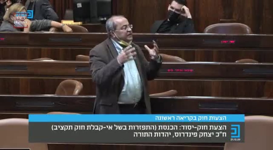 פינדרוס, ממלא מקום יו"ר ועדת הכנסת, עלה לסכם את הדיון על החוק לדחיית מועד אישור התקציב, חוק שהיה אמור להביא לדחיית הבחירות, אחרי 47 נואמים, מהקואליציה והאופוזיציה. אלא שזה לא היה סיכום, אלא פיליבסטר לטובת ההצבעה.