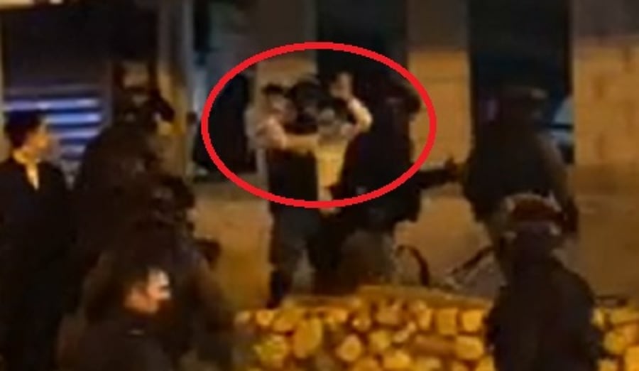 קשה לצפייה: במהלך ליל הפרעות שחוו תושבי בני ברק ביום חמישי האחרון, נער חרדי שפחד מהמשטרה, יצא אל השוטרים כשידיו מורמות למעלה, כאות כניעה, כדי שלא יכו אותו.
