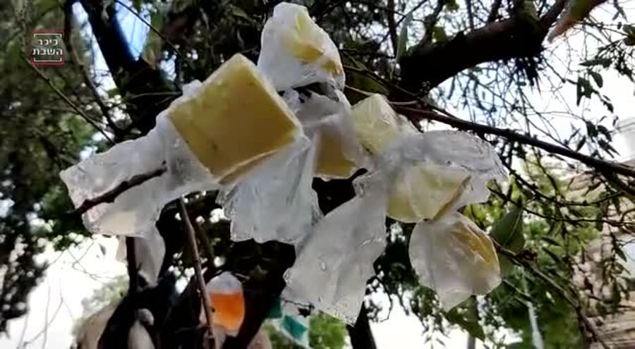 העוברים והשבים ברחוב שטראוס הירושלמי לא בהכרח מבינים מדוע העץ במקום "מעוטר" בעשרות שקיות: אלו שמותיהם של מעוכבי שידוך (בשקדייה) וחשוכי ילדים (בעץ רימון) - כסגולה לישועה (בארץ)