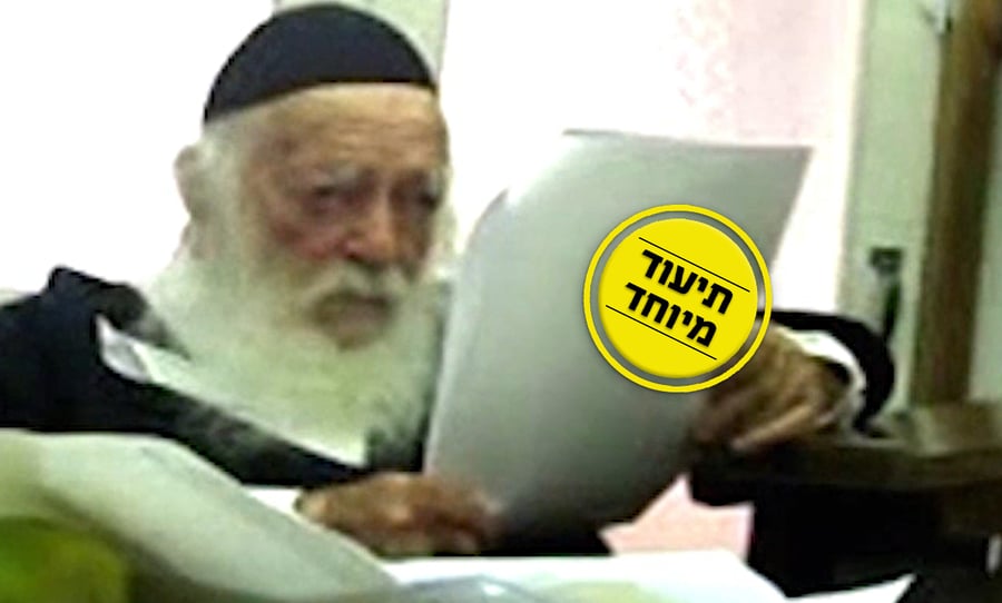 בסרטון המיוחד שצולם לפני מספר שנים נראה תלמידו ומקורבו הגדול, הרה"ג רבי אורי טיגר, מציג בפני מרן שר התורה מאמר שנכתב לאחר פטירת אביו זיע"א על הספר "רבינו ירוחם" ששימש אותו לאחר שהשאיל אותו ממישהו.