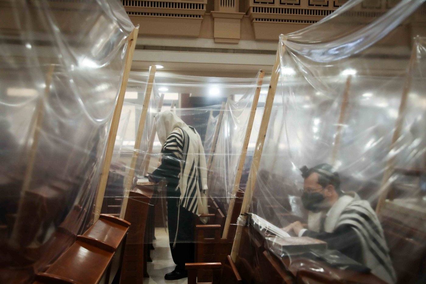 8. מתפללים בבית הכנסת קרלין במהלך התפרצות הקורונה