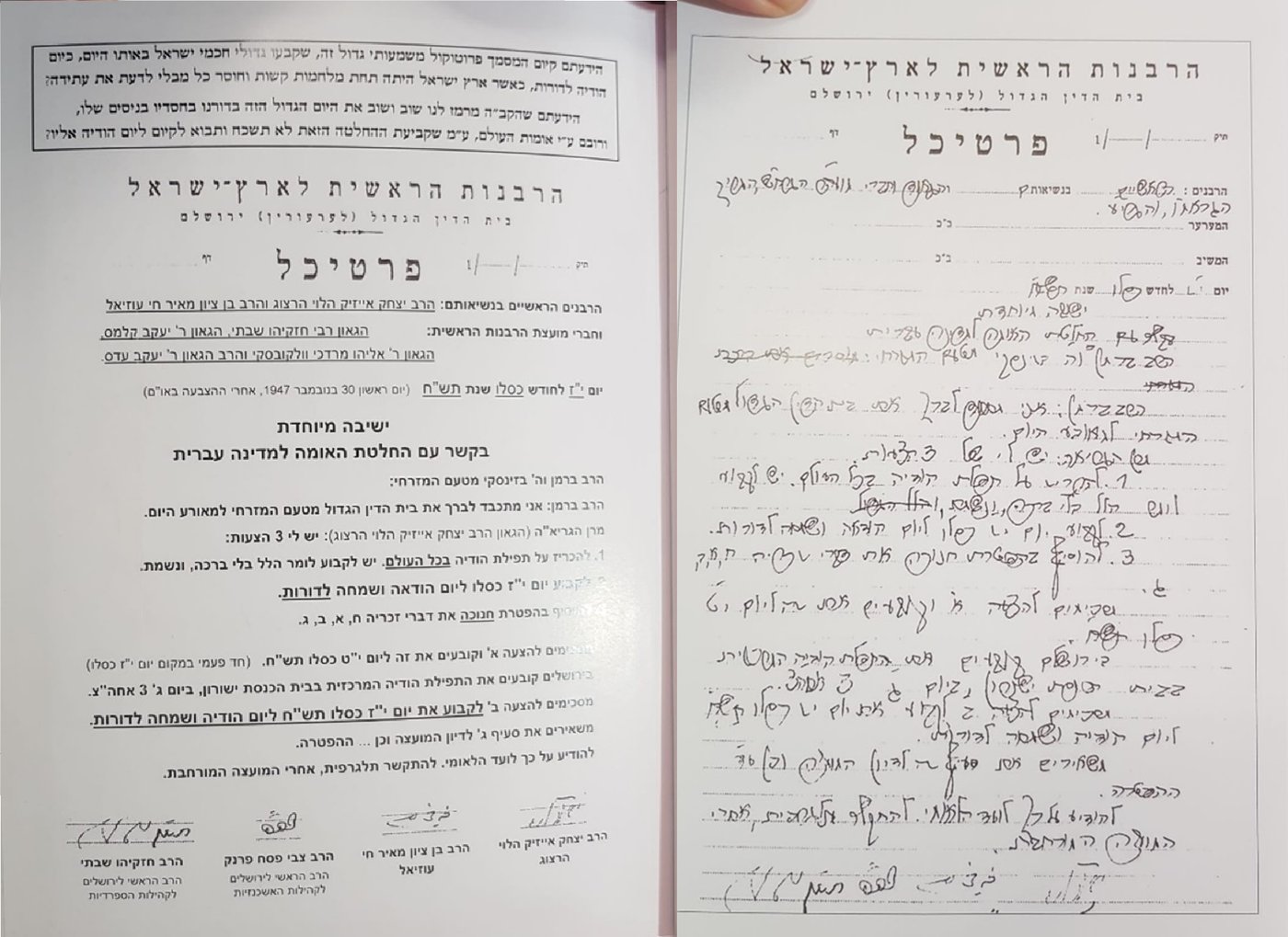 בשנים האחרונות נחשף מסמך רשמי של הרבנות הראשית לישראל שכבר לפני שנים רבות היא קבעה את י"ז בכסלו ליום הודיה ושמחה לדורות שכולל 'הלל' בלי ברכה ואמירת 'נשמת', בשל הצהרת האו"ם על הקמת מדינה יהודית.