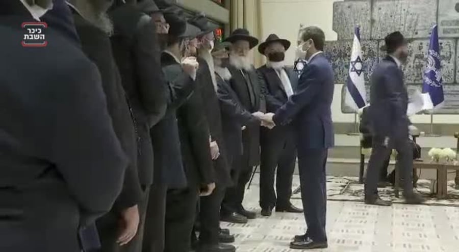 בדיוק ביום בו לפני 108 שנים פגש בפריז סבו הגדול, הרב יואל הרצוג, לפגישה אישית מיוחדת את האדמו"ר החמישי של חסידות חב"ד, אדמו"ר הרש"ב, אירח נשיא המדינה, יצחק הרצוג, במעונו הרשמי בירושלים משלחת רשמית של חברי בית דין רבני חב"ד, חברי אגודת חסידי חב"ד ושליחי הרבי מהארץ והעולם.