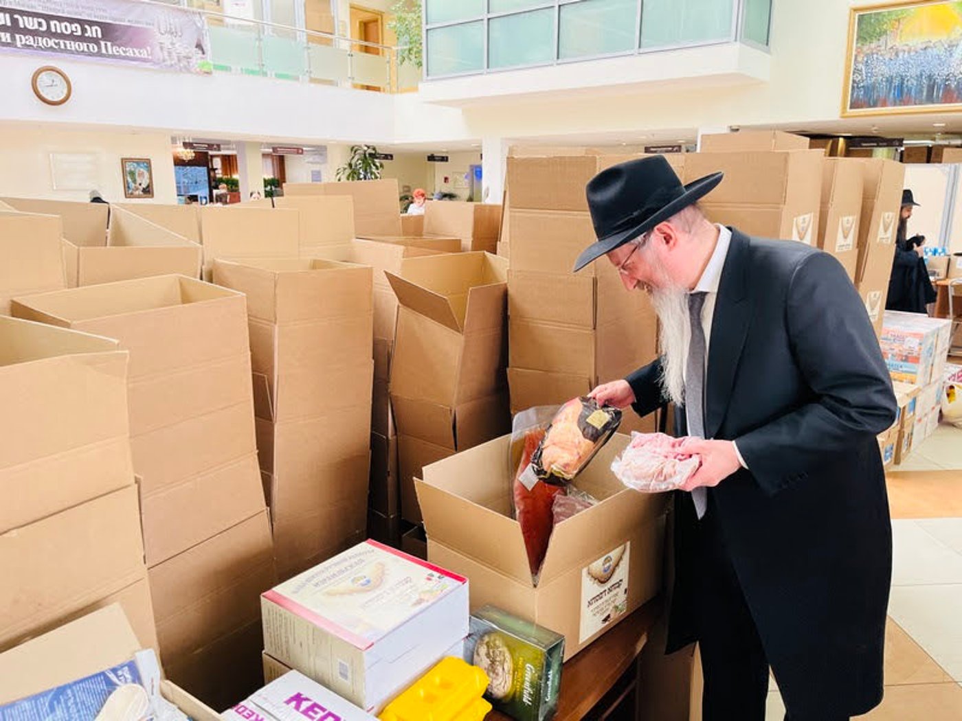 רבה הראשי של רוסיה, הגאון רבי בערל לאזאר, הגיע אישית כדי לפקח אחר ארגון האריזות, ועמד נפעם אל מול שפע מצרכי המזון האיכותיים והמגוונים, הכוללים מצות שמורה, יינות ומיץ ענבים, בשר ועופות, דגים ושמן זית, פירות וירקות.