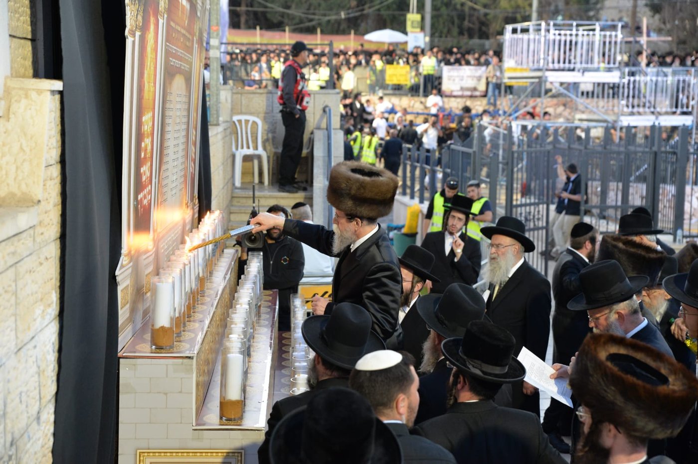 מי שהדליק את הנרות היה האדמו"ר מבאיאן. האדמו"ר הדליק נר אחר נר, כאשר הגבאי מזכיר את שמות הנספים, בזה אחר זה.