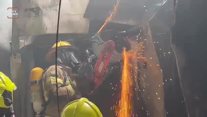 לאחר שצוותי הכיבוי לא הצליחו לפרוץ את ארון הקודש, מנסים בשעה זו צוותי הכיבוי לנסר את ארון הקודש כדי לחלץ את ספרי התורה.