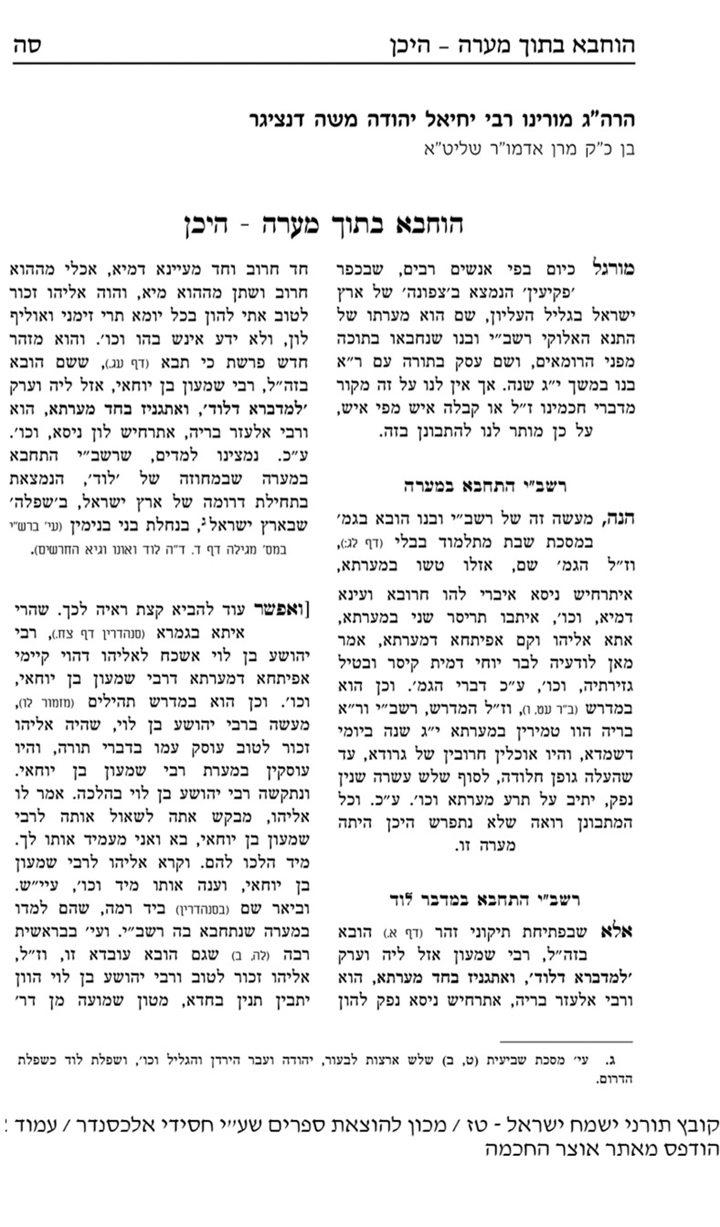 מעניין שהגרי"מ דנציגר פרסם את מאמרו בחודש אייר תשע"ז בקובץ 'ישמח ישראל' המזוהה עם חסידות אלכסנדר, במקביל למאמר בנושא זה שפורסם באותו החודש בעיתון המודיע (ראה תוספת לגליון המודיע, ט"ז באייר תשס"ז, עמודים כא, כז מאמר שמכונה "הוחבא בתוך מערה").