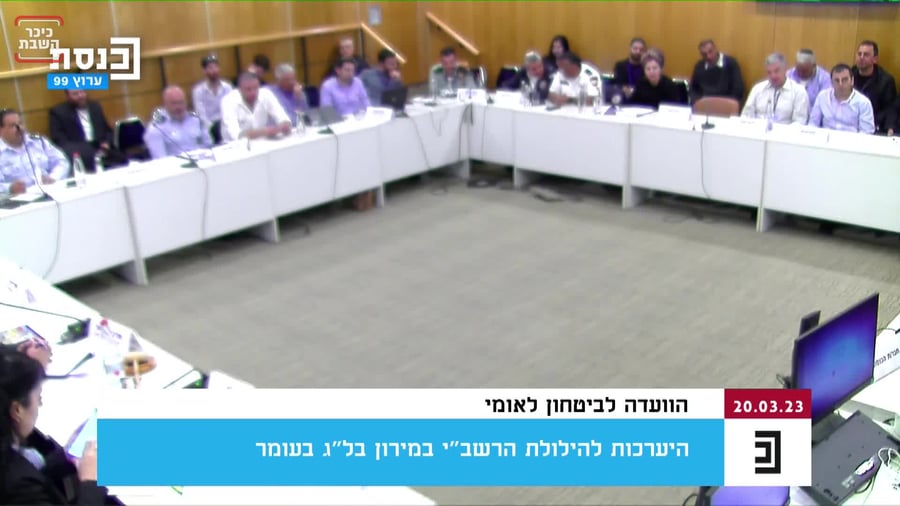 הוועדה לביטחון לאומי קיימה היום (שני) דיון מעקב להיערכות גופי הממשלה וכל הגופים הקשורים להילולת הרשב"י במירון בל"ג בעומר תשפ"ג.