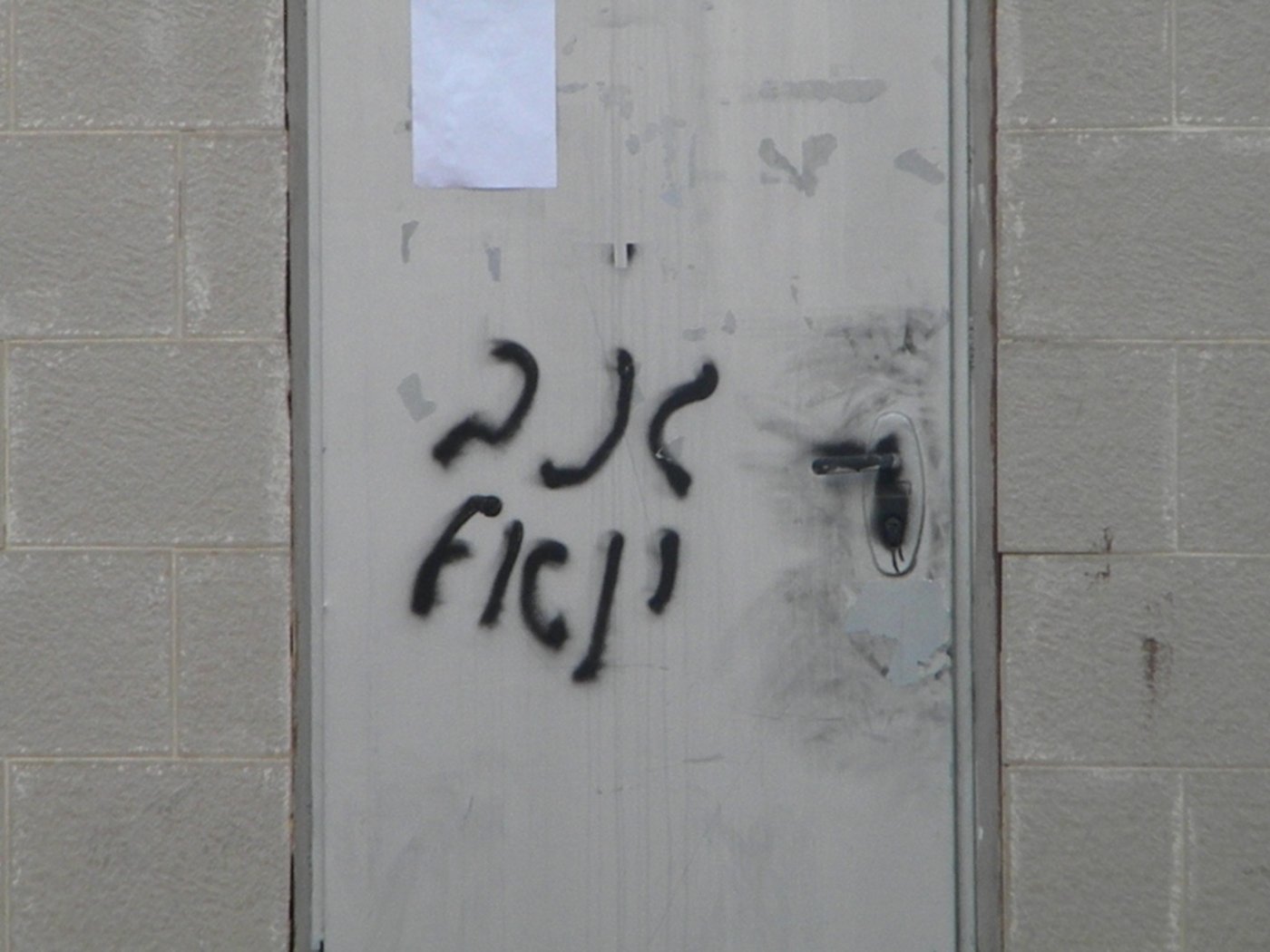 הבוקר גילה גבאי בית-הכנסת את הכתובות "גלזר גנב" המתנוססות על-גבי המבנה.
