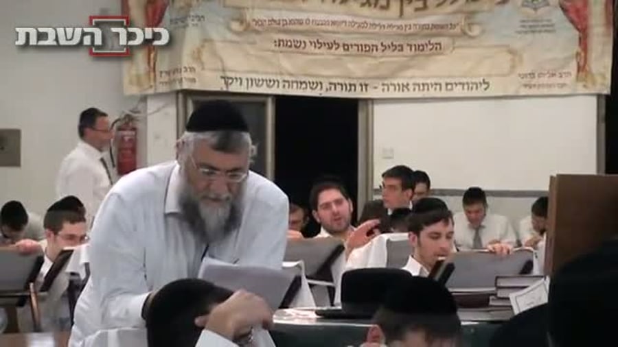 בשעה שכל עם ישראל ערכו את משלוחי המנות וידם עמוסות היו בצלופנים מרשרשים, כאילו מנותקים היו מהעולם - מאות אברכים ששומרים על מסורת, זו השנה השלישית, ולומדים בשקידה את מסכת מגילה לאחר לימוד רצוף של שעתיים סיימו את המסכת ופצחו בריקוד.