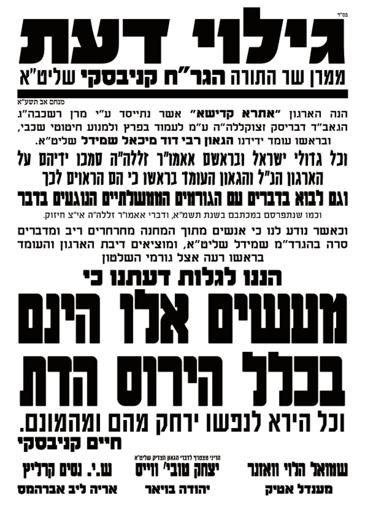 לפני זמן קצר החלו אנשי אתרא קדישא להפיץ מכתב חדש, תחת הכותרת "גילוי דעת ממרן שר התורה הגר"ח קנייבסקי שליט"א", מכתב עליו חתומים בנוסף גם הגר"נ קרליץ והגר"ש וואזנר, לצד גאב"ד העדה החרדית הגר"ט וייס ורבנים נוספים, המעניקים גיבוי חד משמעי להגאון ר' דוד שמידל יו"ר אתרא קדישא.