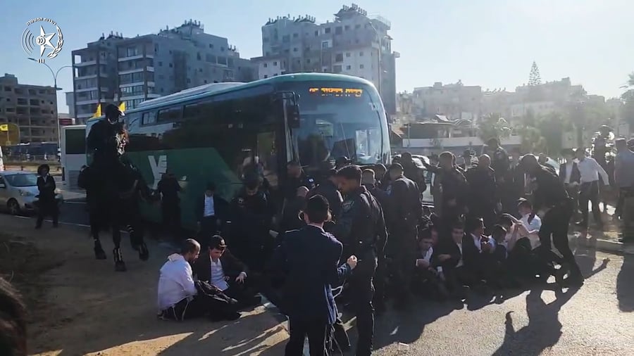 במהלך ההפגנה הסוערת של הרצ"פניקים - הפלג המשויך לראש הישיבה הגאון הרב צבי פרידמן - בכניסה לבני ברק, התמעתו מפגינים עם שוטרים במשך דקות ארוכות. בשלב מסוים בהפגנה נערך טקס "זריקת צווי הגיוס לאסלה" - כמחאה על הכוונה לגייס המוני תלמידי ישיבות.