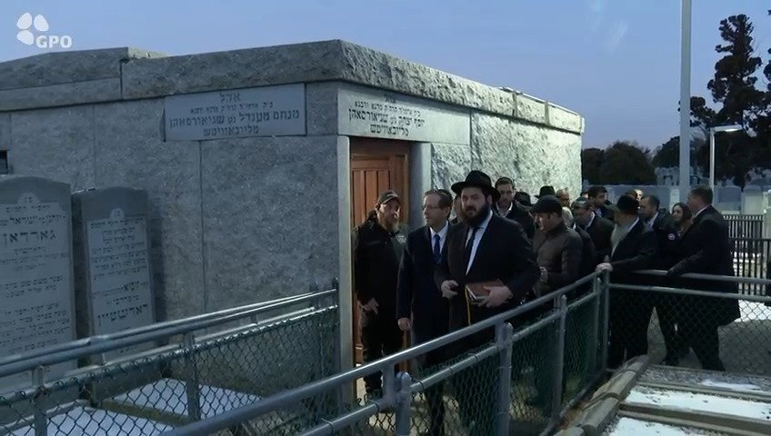 נשיא המדינה יצחק הרצוג ורעייתו מיכל נחתו הבוקר, יום ראשון, בניו יורק, ועם הגעתם הגיעו לציון הרבי מליובאוויטש בבית העלמין בקווינס, ניו-יורק.