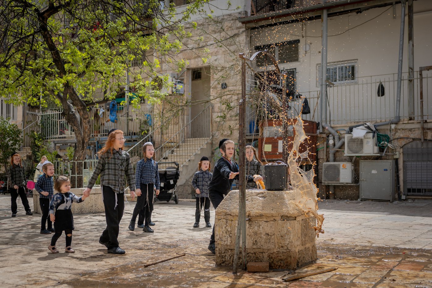 הווי השכונה הירושלמית 'מאה שערים' מתכוננת לחג הפסח בדיצה ובחדווה | שיח תושבים ברחובות השכונה תוך כדי הכנות קדחניות, ילדים מקפצים בעליזות, ועוזרים לכל עובר ושב בסחיבת 'קמחא דפסחא' ובניקיונות הבית והחצרות | וגם, תיעוד מרהיב ממאפיית המצות בקריית בעלזא בירושלים, שם נצפו ראשי החסידות עוסקים בלישה ובאפייה מתוך זיעה של מצווה | חיים גולדברג עשה סיבוב ומגיש תיעוד מרהיב (חרדים)