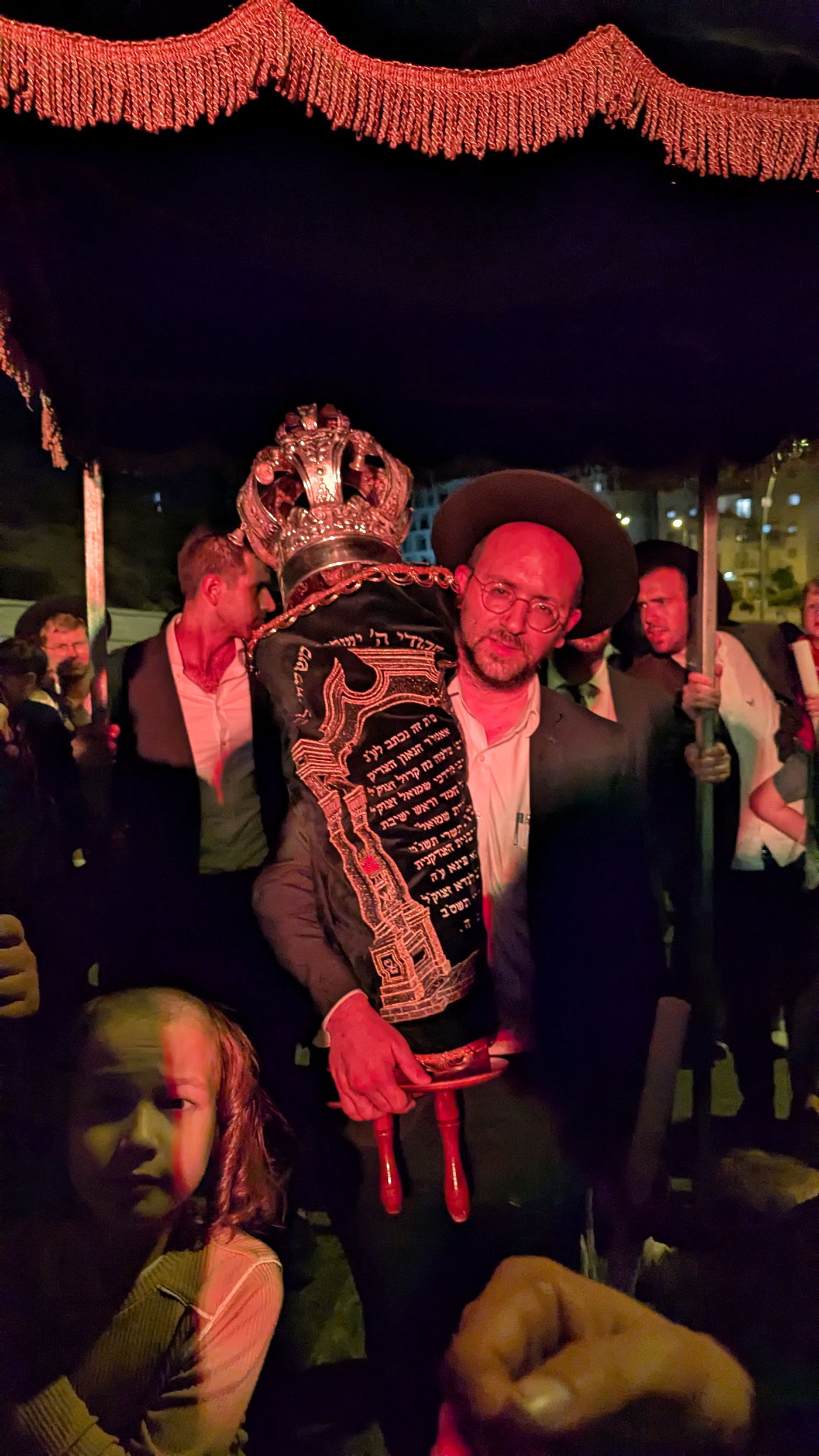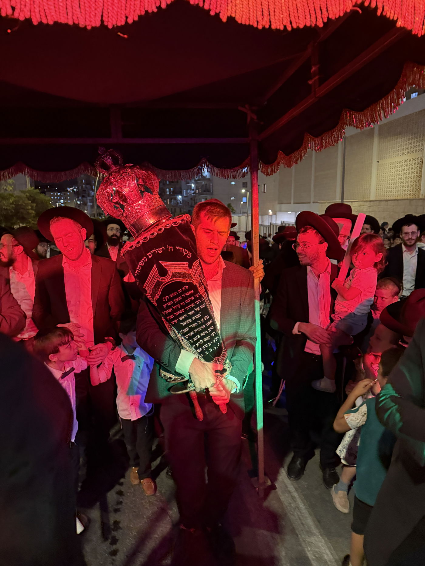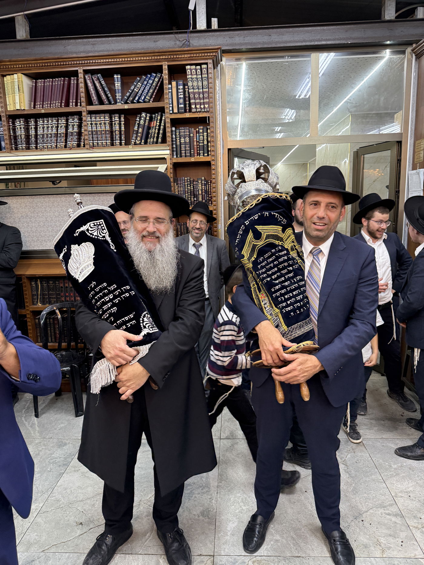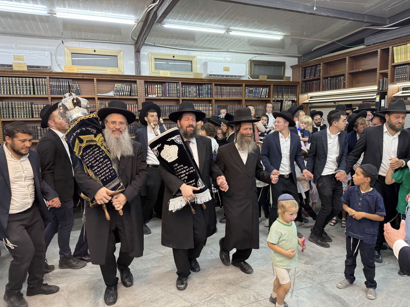 השמחה נמשכה בהיכל בית המדרש בריקודים סוערים לכבודה של תורה, כשראש מוסדות “דרך אמונה” הגרא״ש כהן ורב השכונה הגר״א זנגר, רוקדים ומפזזים בעוז עם ספר התורה לקול תרועת ההמונים שששו ושמחו בשמחת תורה.