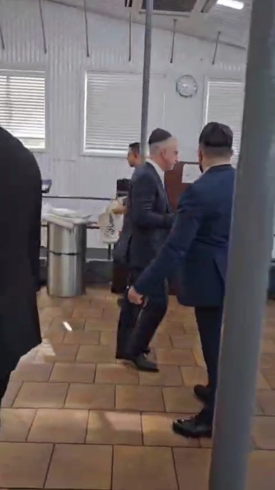 ברנע הגיע כשהוא מלווה במאבטחים, שעטו מסכות על פניהם, וכשעל ראשו כיפה שחורה גדולה, לצד כמה משלוחי ורבני חב"ד שנכנסו עמו פנימה.