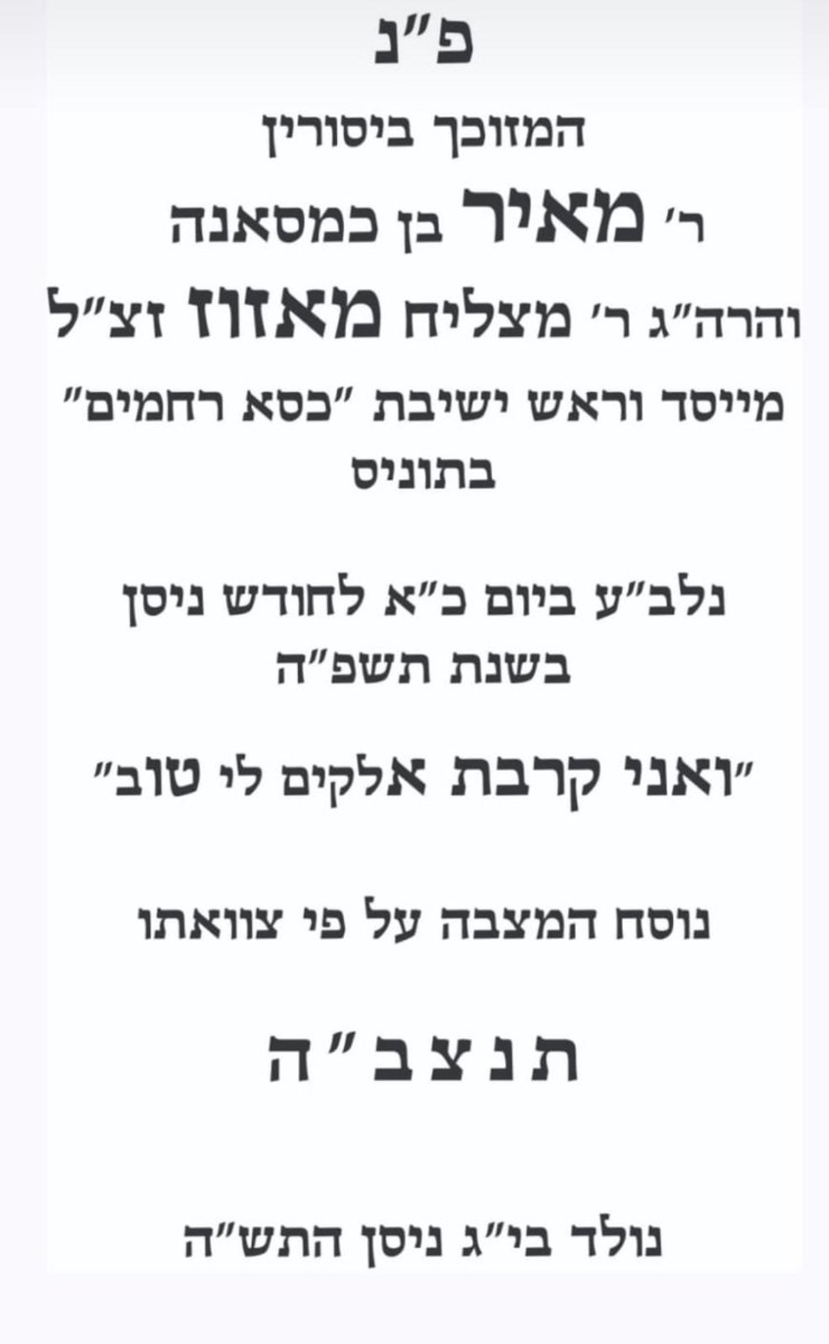 המזוכך ביסורין ר' מאיר בן כמאסאנה והרה"ג ר' מצליח מאזוז זצ"ל