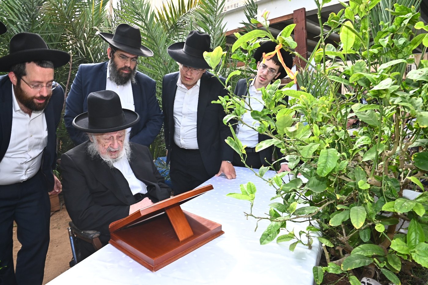 כנהוג בחודש ניסן, הגיע ראש הישיבה הגאון רבי ברוך דב פוברסקי לאמירת 'ברכת האילנות' ע"י עצי פרי | במעמד נכחו ניניו הילדים של ראש הישיבה, שנעמדו בגורן סביב שולחנו ובצוותא חדא אמרו את הברכה (חרדים)
