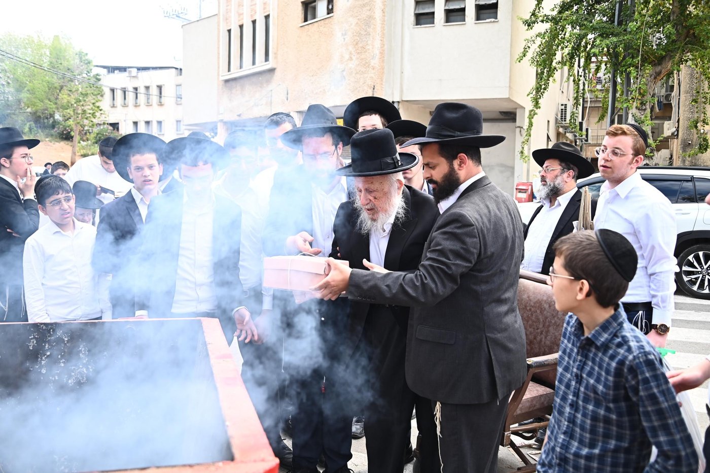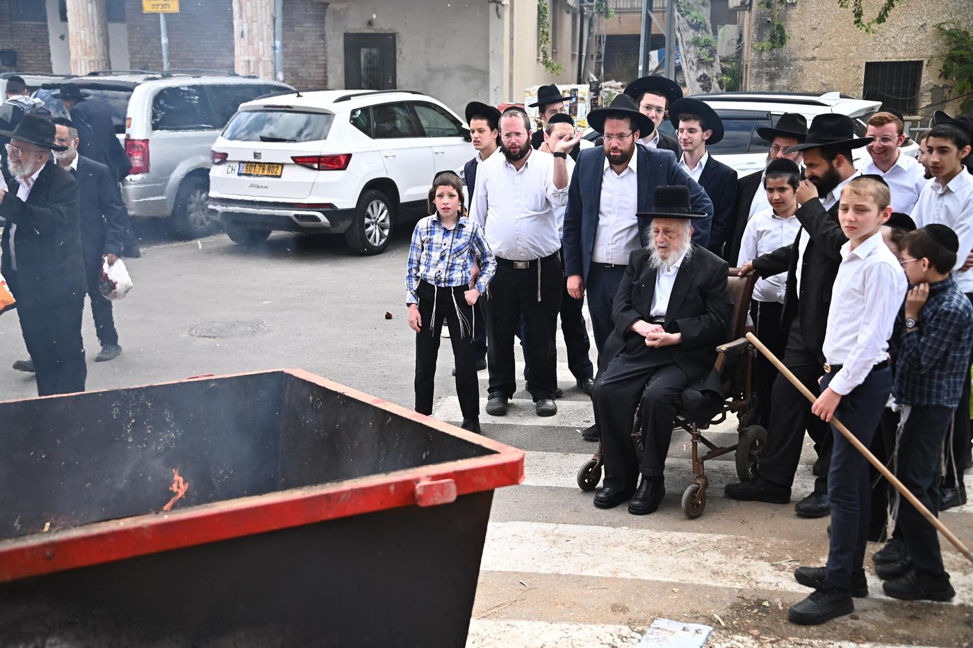 בערב שבת וחג יצא ראש הישיבה הגאון רבי ברוך דב פוברסקי, למעמד שריפת חמץ ברחובה של עיר. ראש הישיבה שרף בין השאר את ה'עשרה פירורי חמץ' שאסף ביום אור לי"ג ניסן, וכמה לולבים שהשתמש בהם בימי חג הסוכות (חרדים)