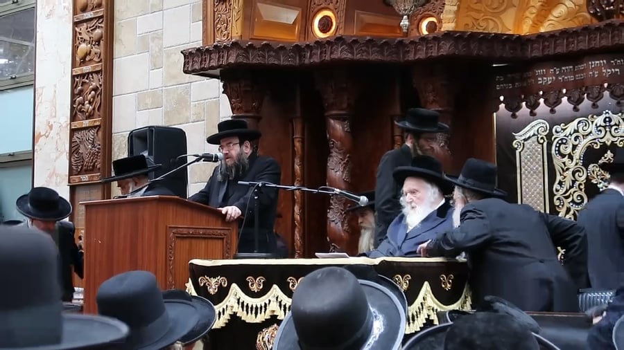 ראש הישיבה המבוגר, שלא נכח במעמד, נשא דברים שהועברו לקהל שנכח במקום דרך הטלפון, והתייחס בדבריו למחלוקת בתוך העדה החרדית ולהתנגדות הפלג הקיצוני יותר למינויו של הרב שטרנבוך לתפקיד.