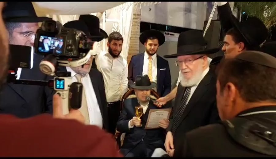 נכדו של הגר"מ מאזוז התחתן, ראש הישיבה כובד בסידור חופה