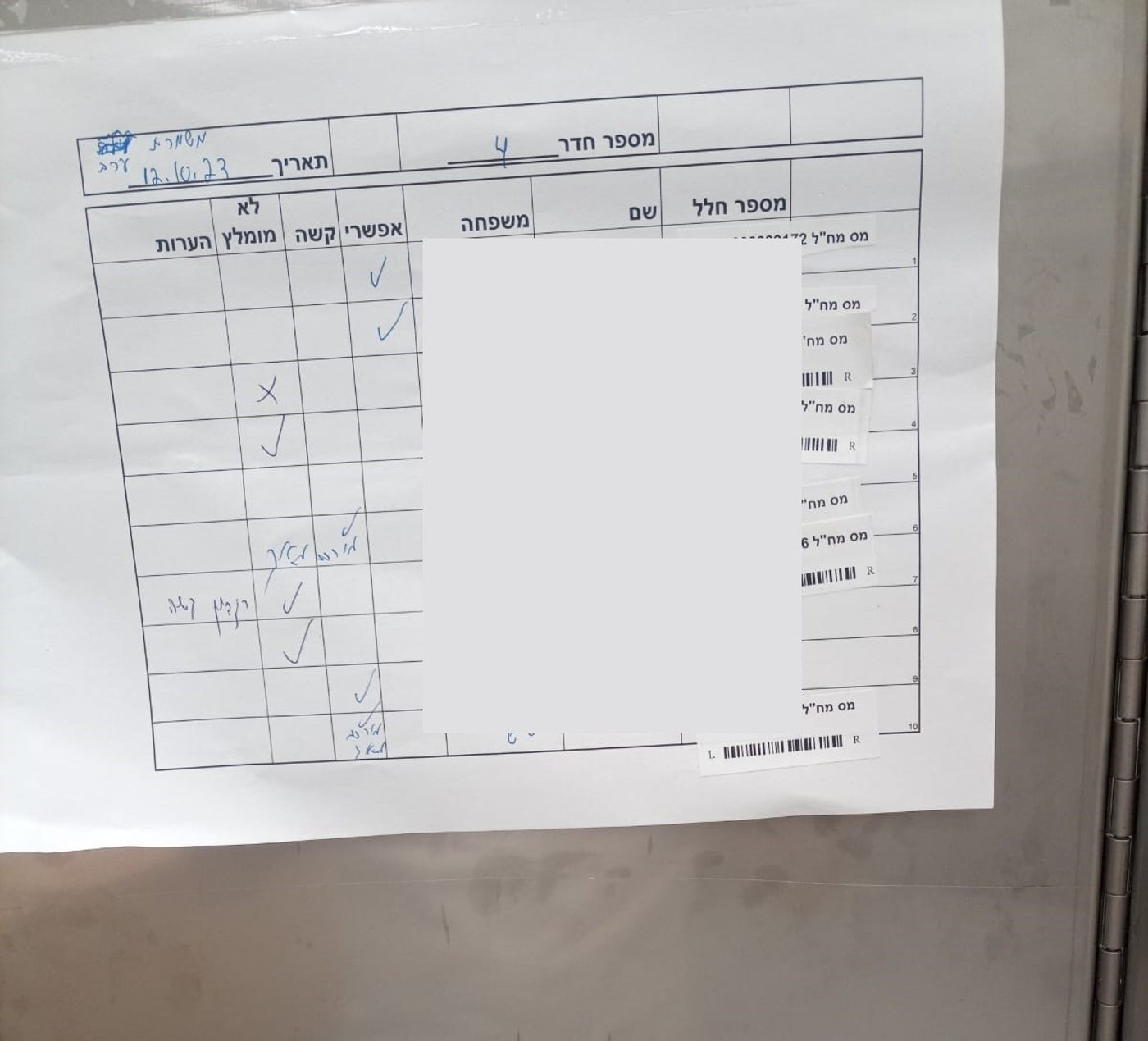 אני מקרב את הכיסא, וכבר פותחים בשיחת סרק. מכירים אנשים משותפים, הם וותיקים כ-20-30 שנה, מתעניין בתפקידם, הם באו כעת מהשטח, וכבר שלושה ימים ברצף אוספים גופות בקיבוץ בארי. אני מעז לשאול אותם אודות המשאית האחרונה שהגיעה הבוקר ב-9:00 מהיישוב בארי, למה מצב הגופות קשה כל-כך? וכאן נפתח פתח לשחרור הקושי הנפשי ופריקת המשא הנוראי הזה.