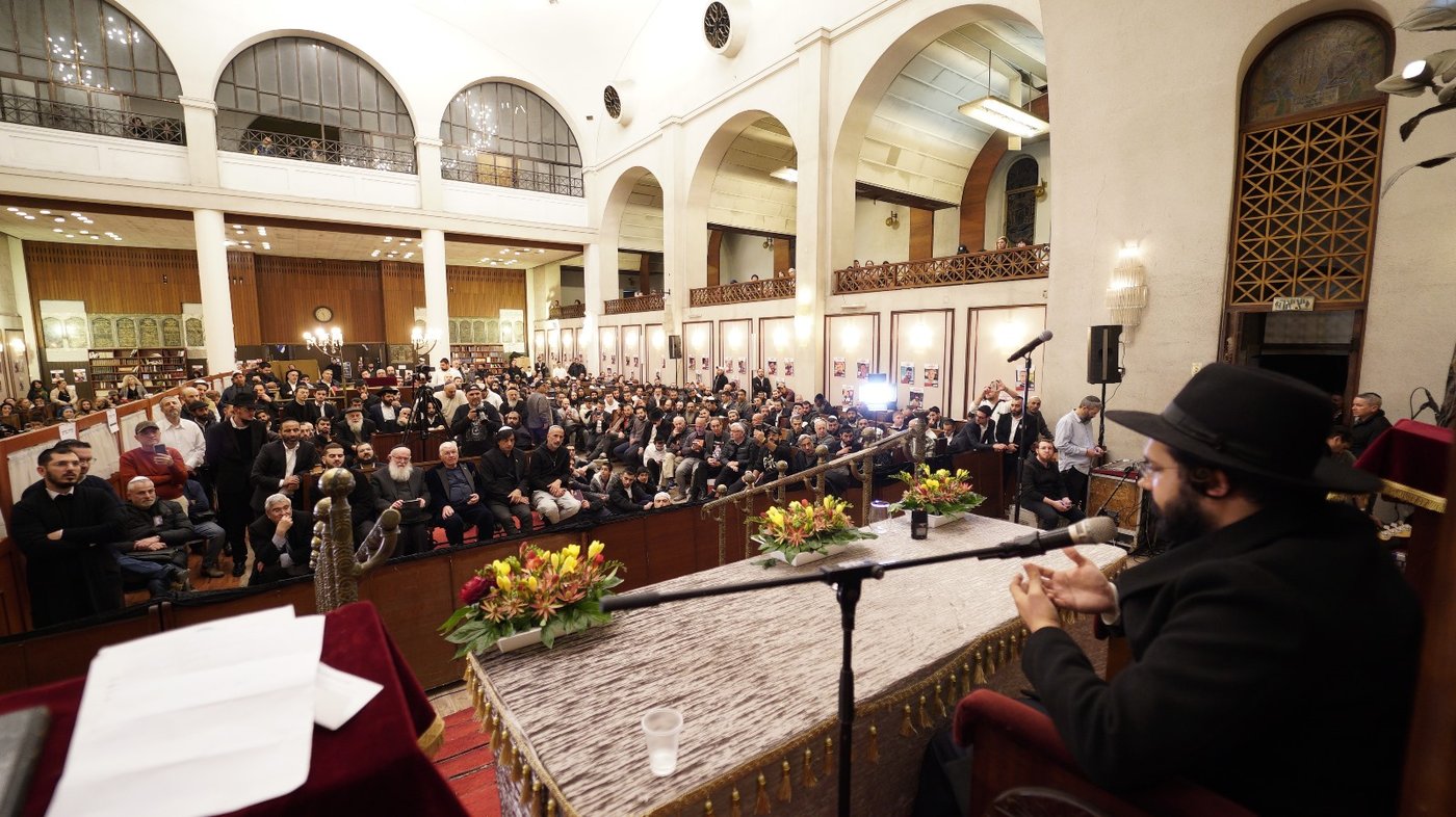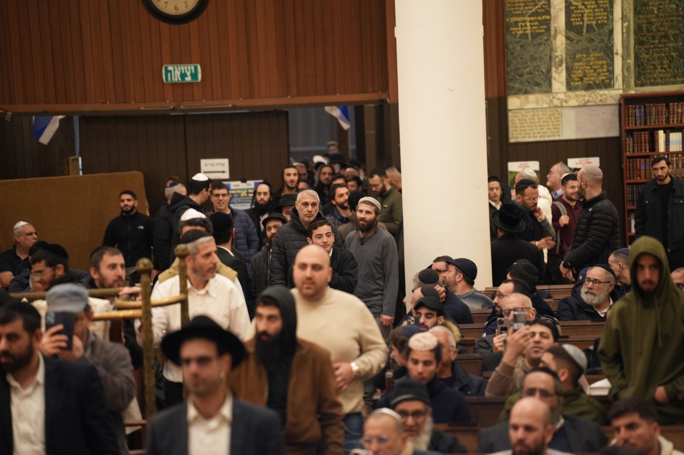 בליל 'פורים קטן' התקיימה בבית הכנסת הגדול בתל אביב, עצרת תפילה מרגשת, בנוכחות בני משפחות החטופים ורבני האיזור, בתפילה ותקווה לשחרורם המהיר.