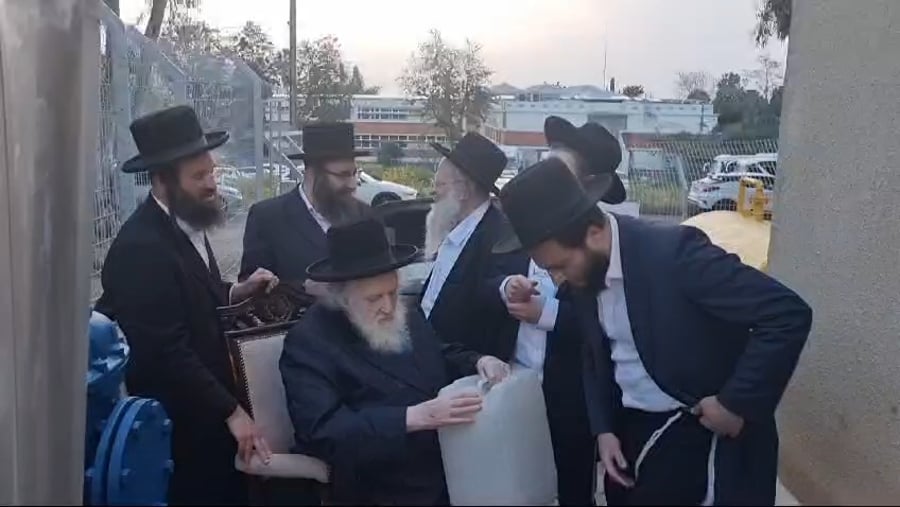 ראב"ד ירושלים הגאון רבי משה שטרנבוך השוהה בימים אלו לנופש בעיר נתניה, הגיע אתמול (חמישי) בשקיעתה של חמה מעל פני הרקיע, לשאוב מים שלנו לצורך אפיית מצות מצווה כנהוג.