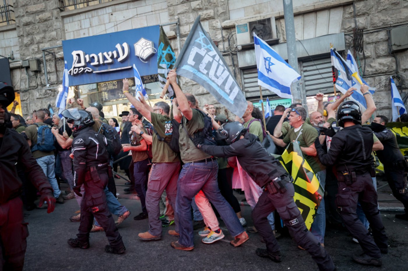 מדוברות המשטרה נמסר: "לפני זמן קצר במקביל להפגנה מתואמת שהחלה באזור הכנסת במתחם המחאות המוגדר לכך, הגיעו כמה עשרות מוחים לאזור כיכר השבת בירושלים, חסמו את ציר התנועה במקום בניגוד לחוק והחלו להתעמת עם תושבי האזור, שהתקהלו במקום, תוך הפרת הסדר הציבורי. במקום נוצר חיכוך בין הצדדים, וכוחות משטרה פעלו לחצוץ בין הניצים, למנוע מעשי אלימות ולהדוף את המתפרעים. בעקבות השלכת ביצים וחפצים לעבר אותם מפרי סדר והפלת קטנוע משטרתי נעצר מספר סדר במקום".