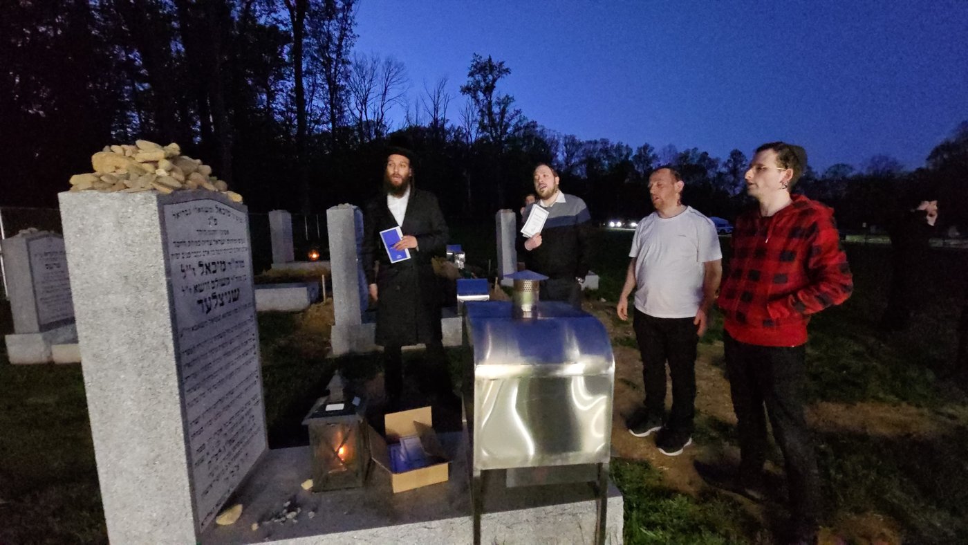במלאת שנה לפטירתו הפתאומית של אמן הרגש העולמי בעל המנגן הרה"ח מיכאל שניצלער ע"ה | המונים פקדו את קברו בבית החיים 'הר שלום' במאנסי | אוהלי ענק נבנו במקום להדלקת נרות וכיבוד קל במהלך כל היום | רבנים, חסידים, ובעלי מנגנים נשאו תפילה לזכרו | (חסידים)