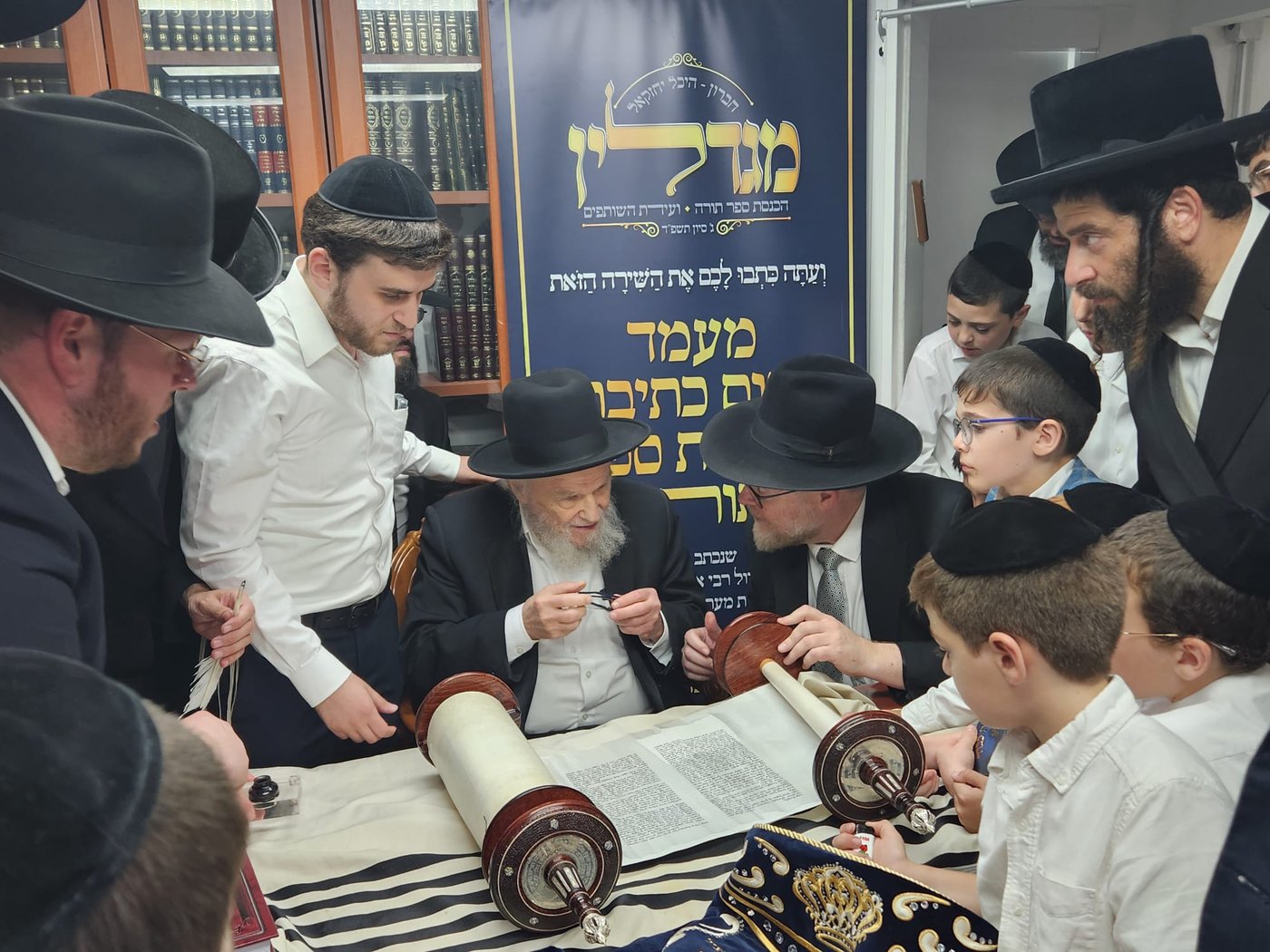 במעמד סיום כתיבת האותיות השתתפו בין היתר, ראש ישיבת בריסק הגאון רבי יצחק זאב סולובייצ'יק וכ"ק האדמו"ר ממודזיץ'.