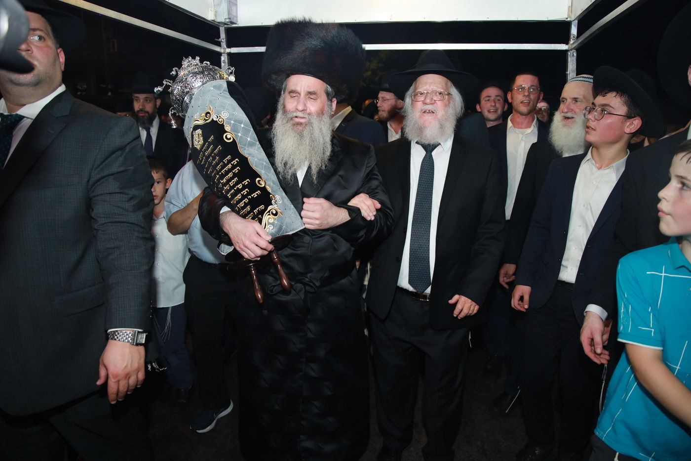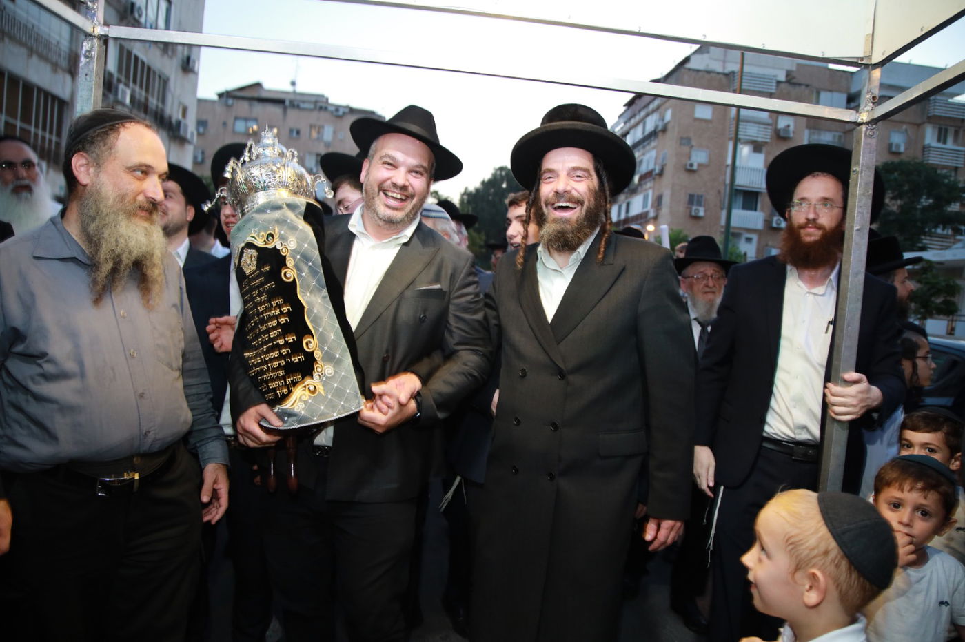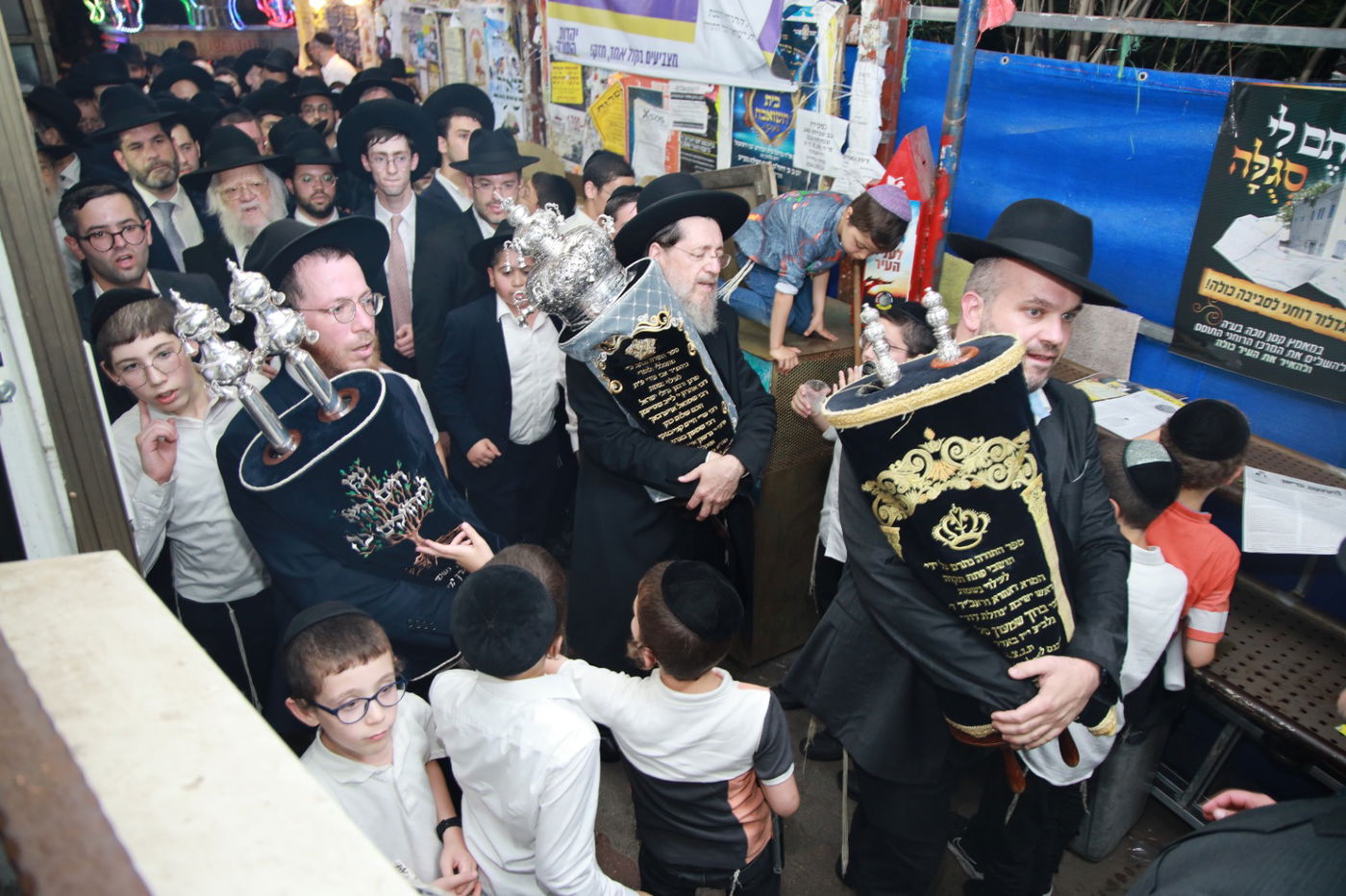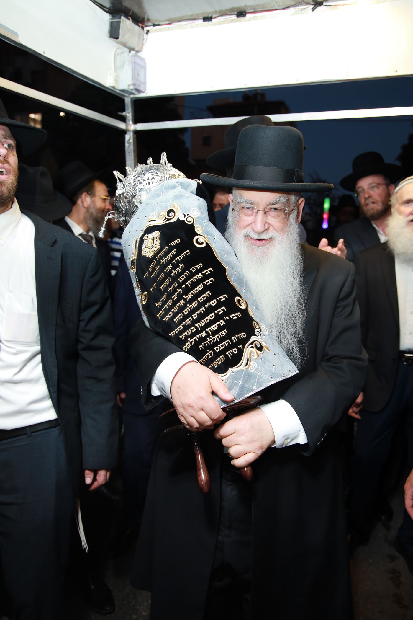 לאחר מכן יצאה התהלוכה ברוב פאר והדר, בשירים ובמחולות, בסיוע היחידה לתרבות חרדית בניהולו של הרב אברהם פקטר, ובליווי מאות מילדי העיר, בני הישיבות ותושבים נרגשים, שרקדו ופיזזו לכבודה של תורה, לכל אורך התהלוכה ברחובות העיר עד לבית המדרש, שם המשיכה שמחת התורה במשך זמן רב.
