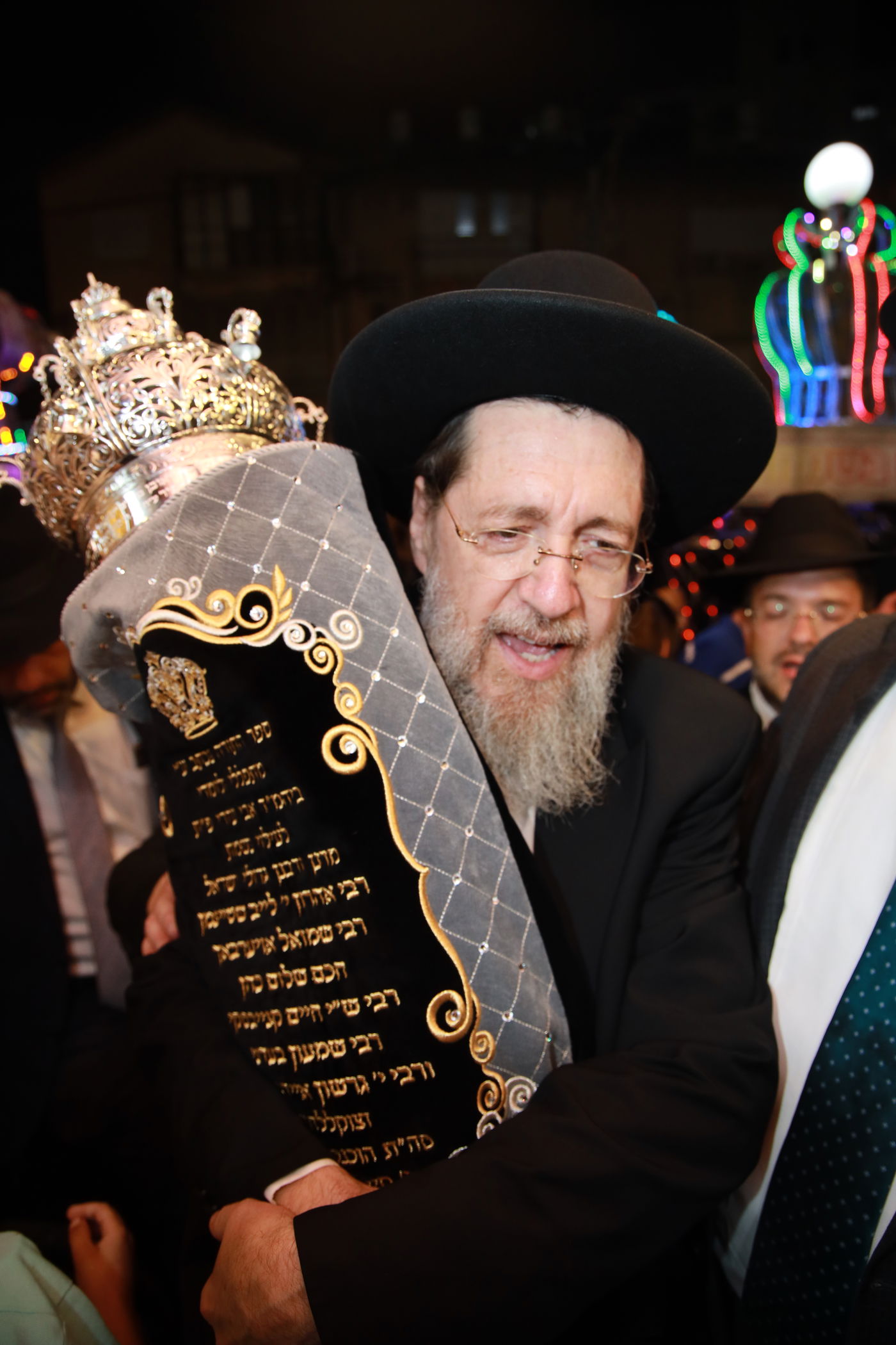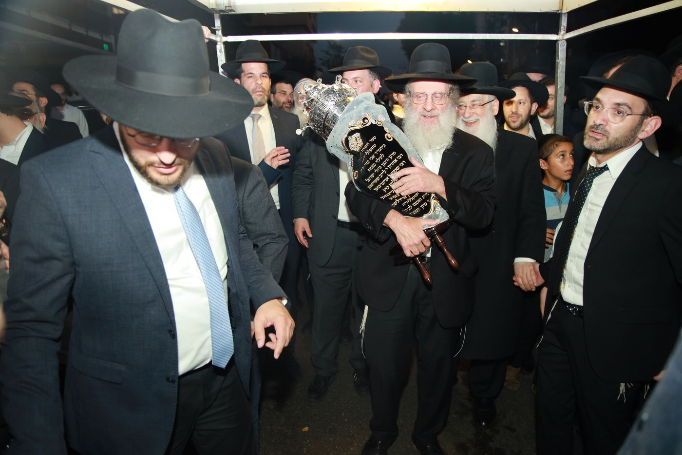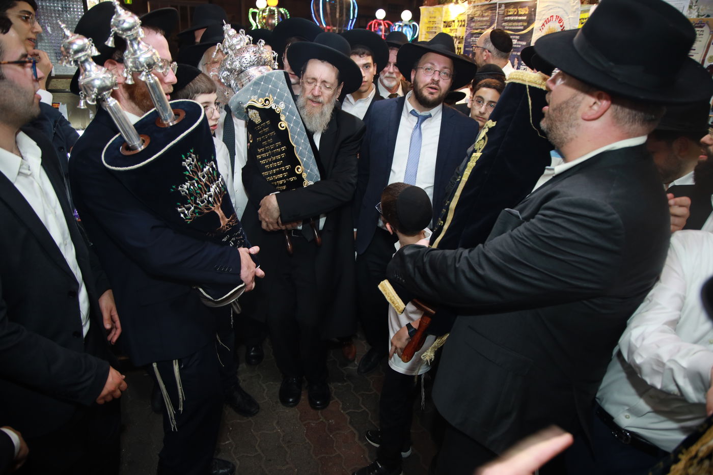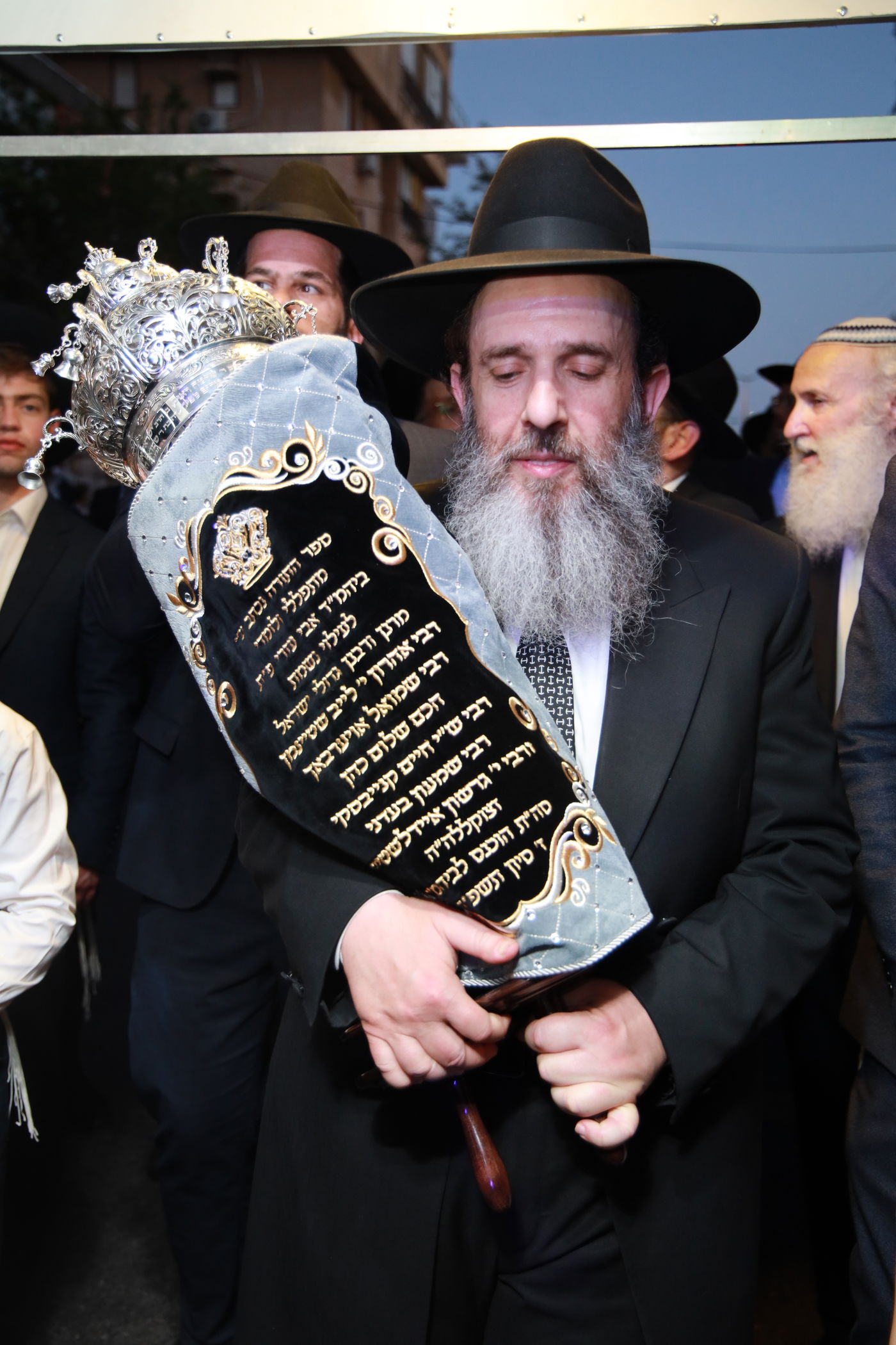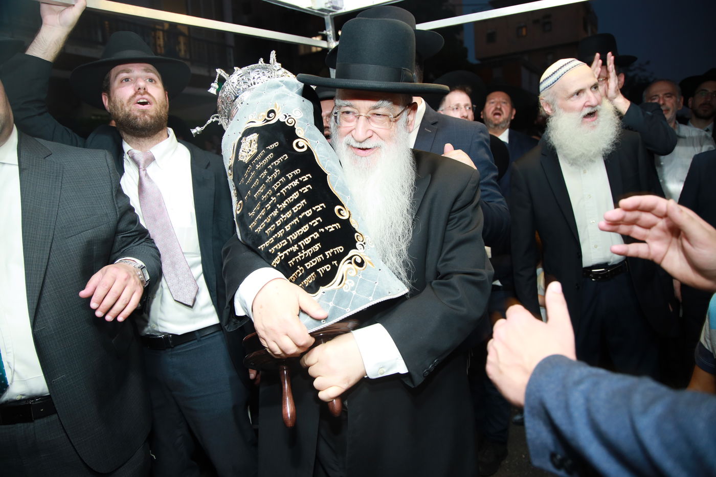 לאחר מכן יצאה התהלוכה ברוב פאר והדר, בשירים ובמחולות, בסיוע היחידה לתרבות חרדית בניהולו של הרב אברהם פקטר, ובליווי מאות מילדי העיר, בני הישיבות ותושבים נרגשים, שרקדו ופיזזו לכבודה של תורה, לכל אורך התהלוכה ברחובות העיר עד לבית המדרש, שם המשיכה שמחת התורה במשך זמן רב.