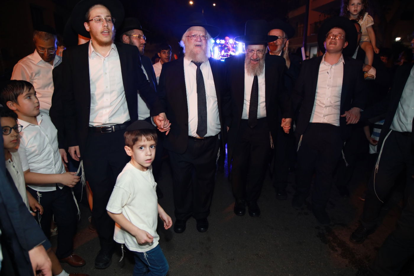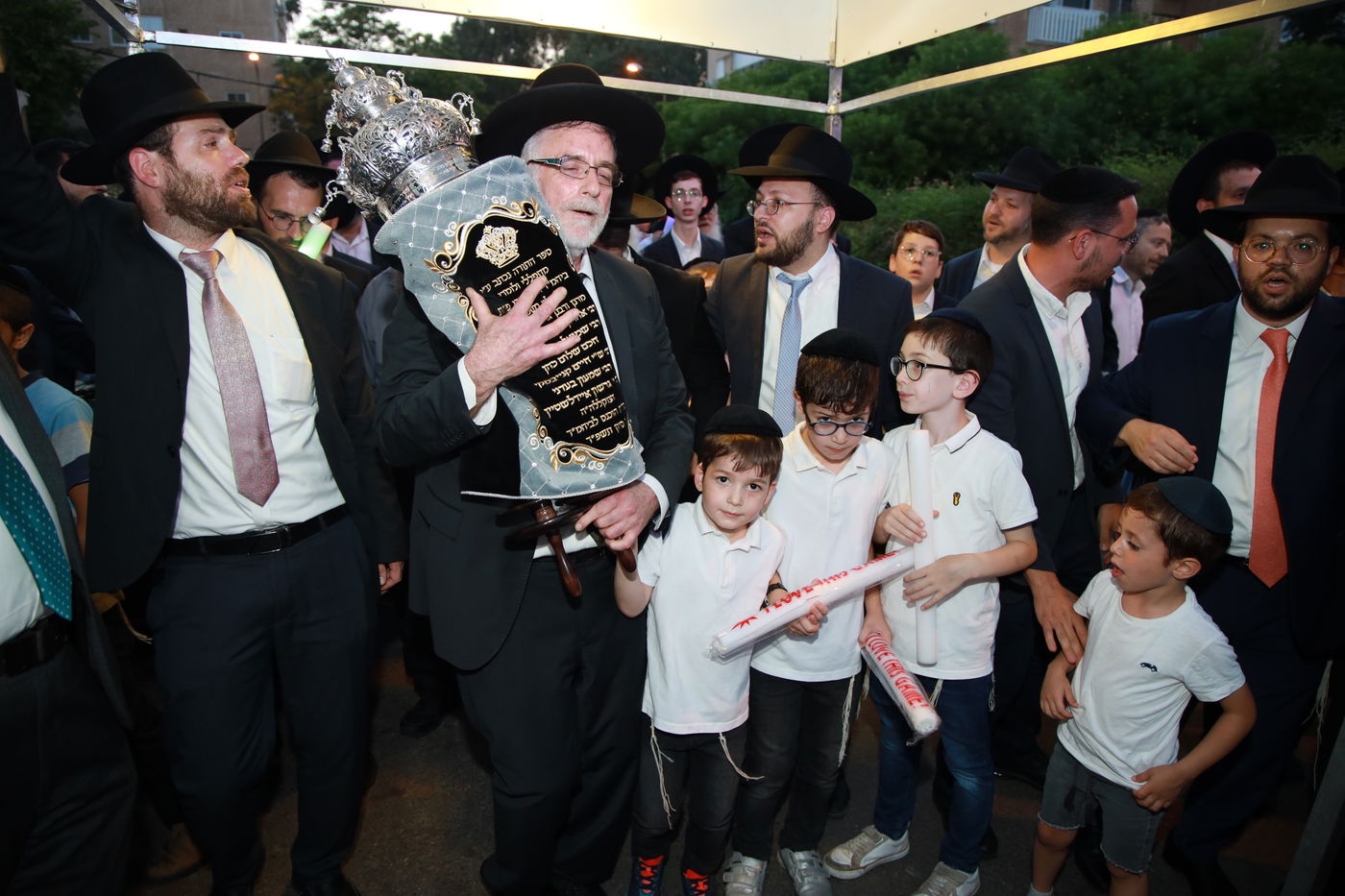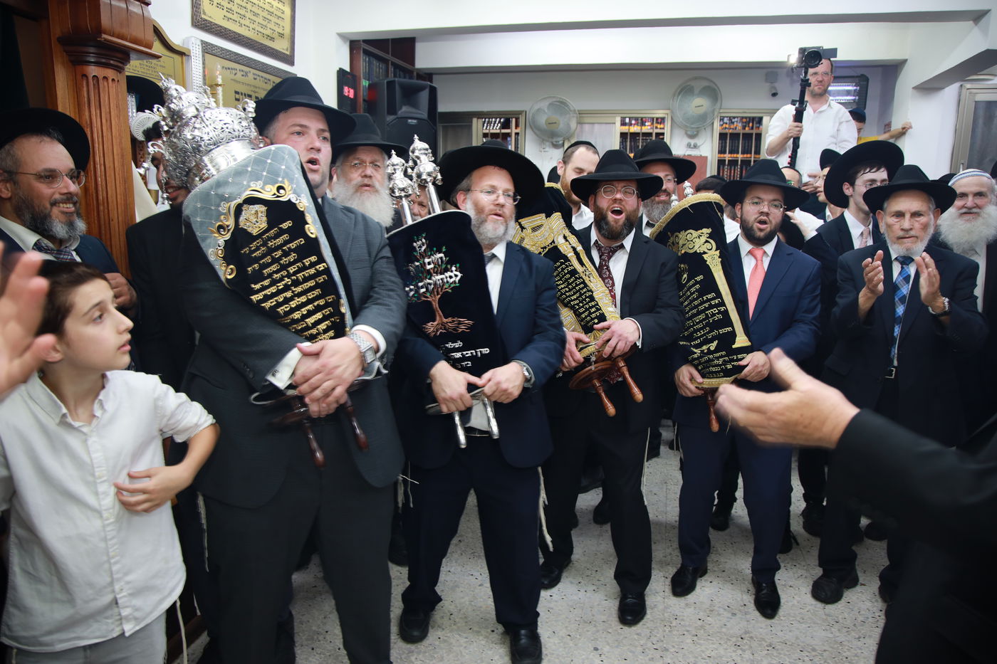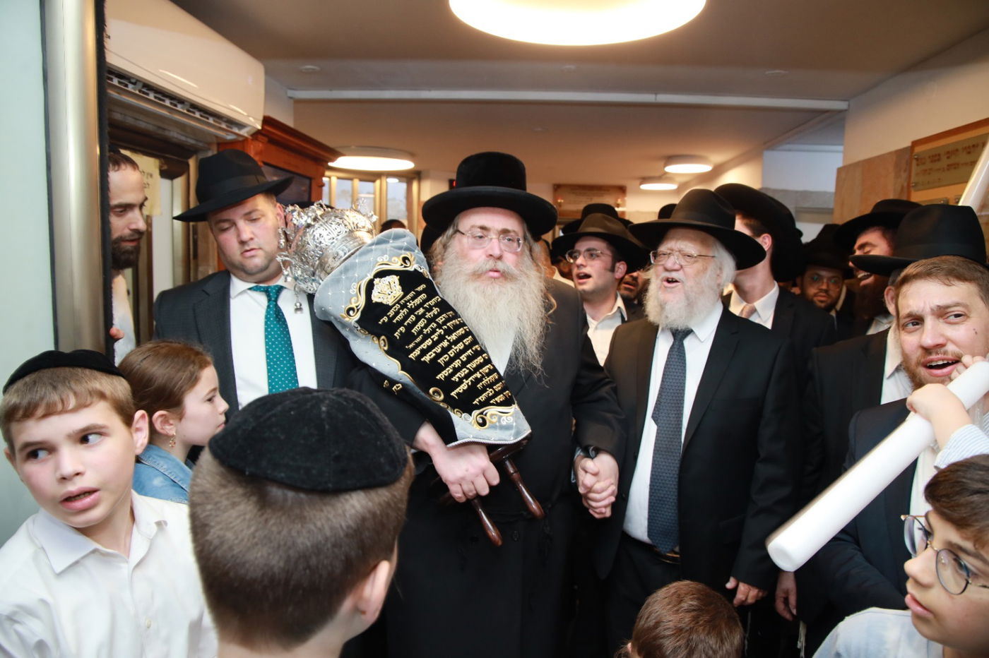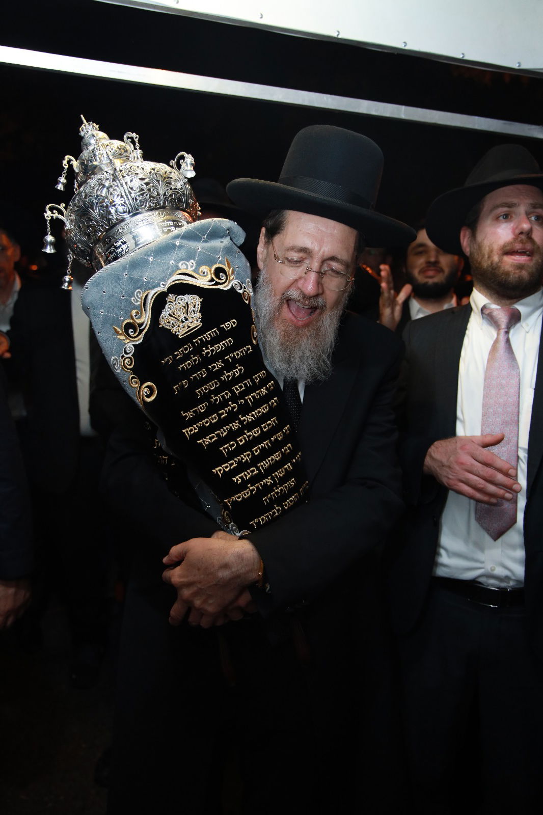 לאחר מכן יצאה התהלוכה ברוב פאר והדר, בשירים ובמחולות, בסיוע היחידה לתרבות חרדית בניהולו של הרב אברהם פקטר, ובליווי מאות מילדי העיר, בני הישיבות ותושבים נרגשים, שרקדו ופיזזו לכבודה של תורה, לכל אורך התהלוכה ברחובות העיר עד לבית המדרש, שם המשיכה שמחת התורה במשך זמן רב.