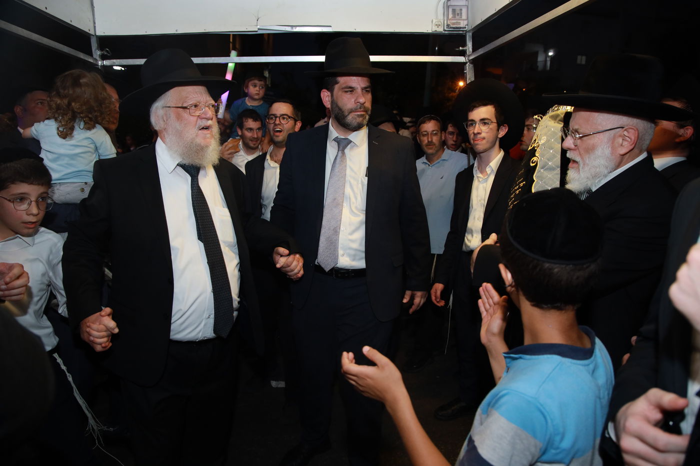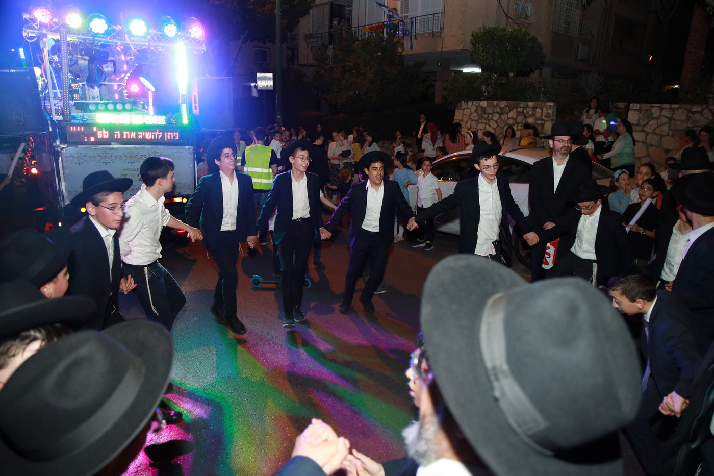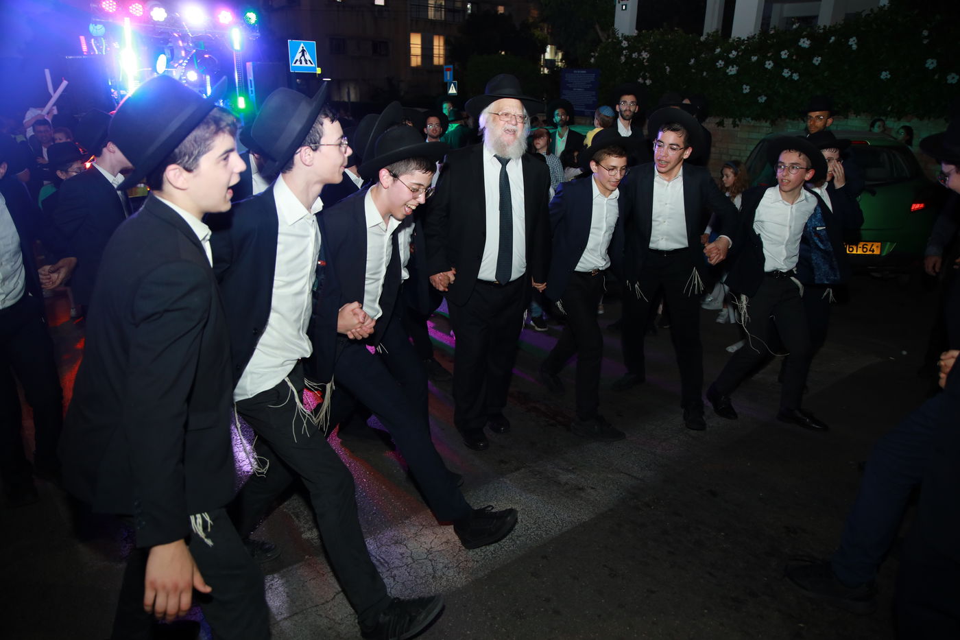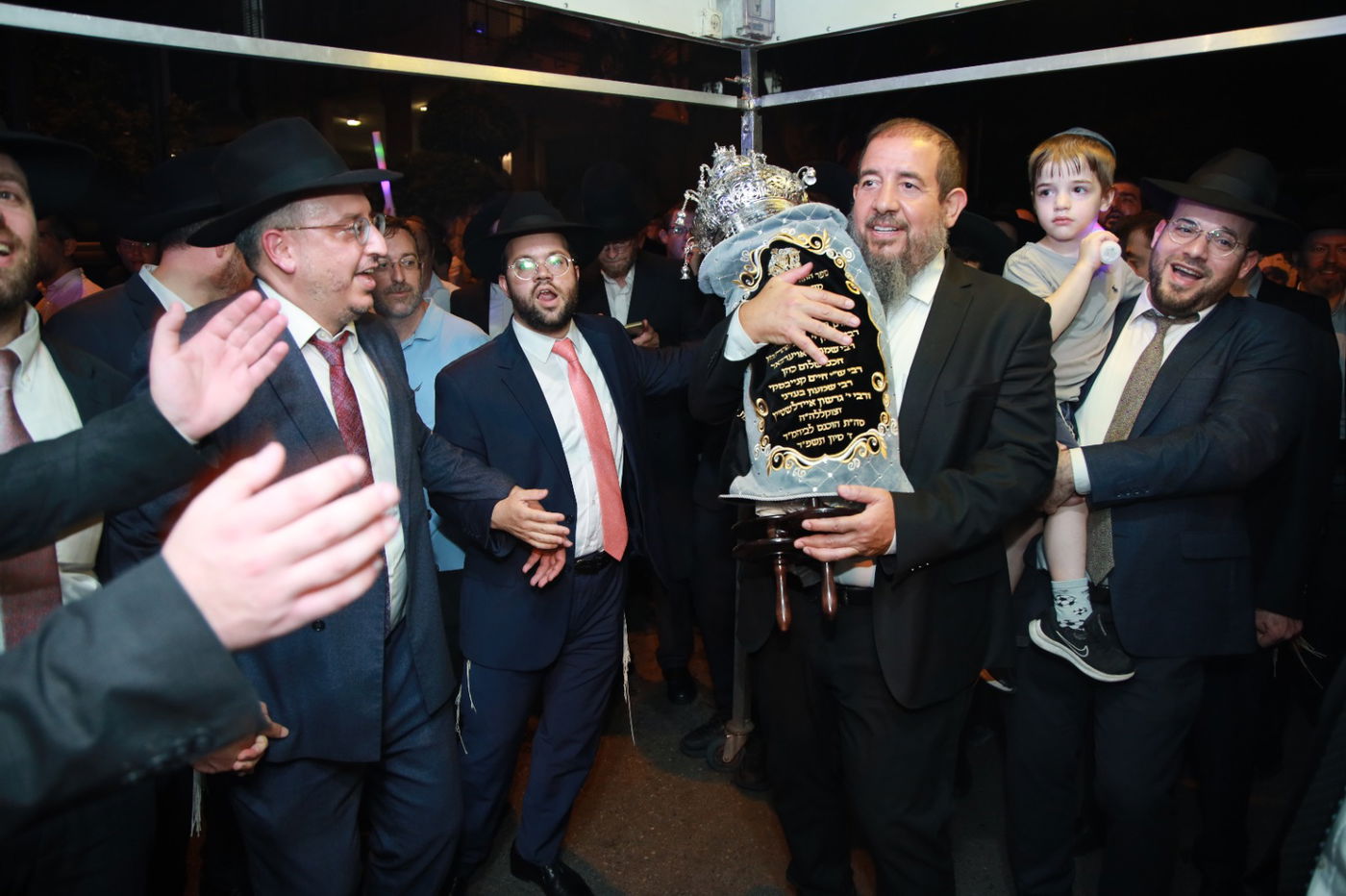 לאחר מכן יצאה התהלוכה ברוב פאר והדר, בשירים ובמחולות, בסיוע היחידה לתרבות חרדית בניהולו של הרב אברהם פקטר, ובליווי מאות מילדי העיר, בני הישיבות ותושבים נרגשים, שרקדו ופיזזו לכבודה של תורה, לכל אורך התהלוכה ברחובות העיר עד לבית המדרש, שם המשיכה שמחת התורה במשך זמן רב.