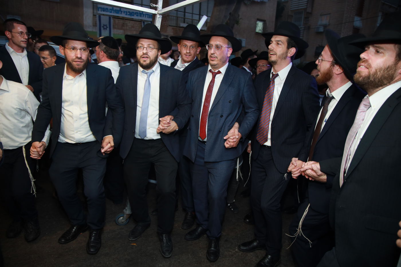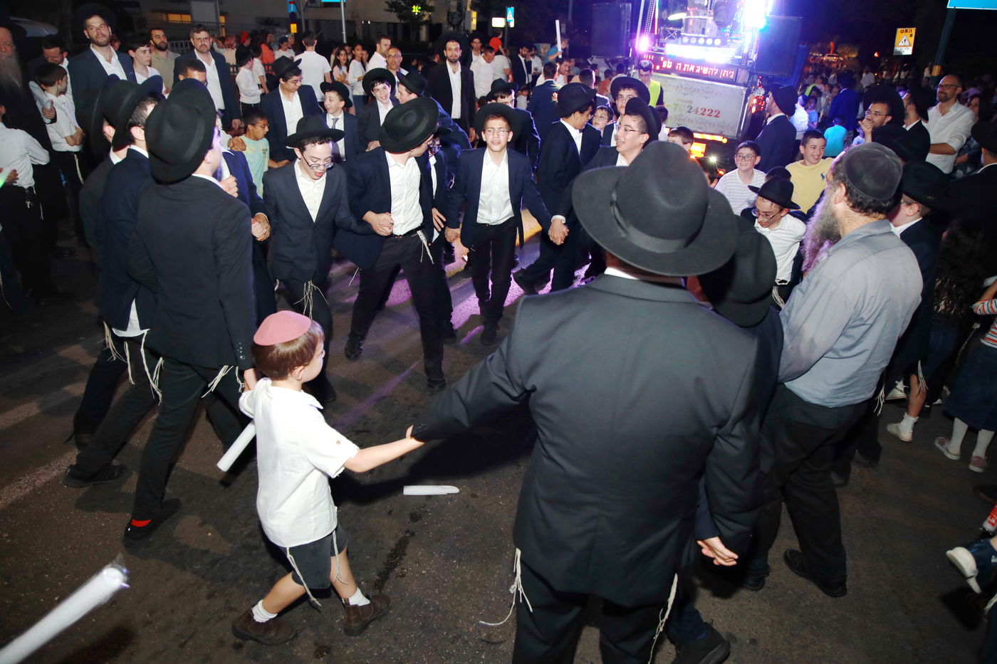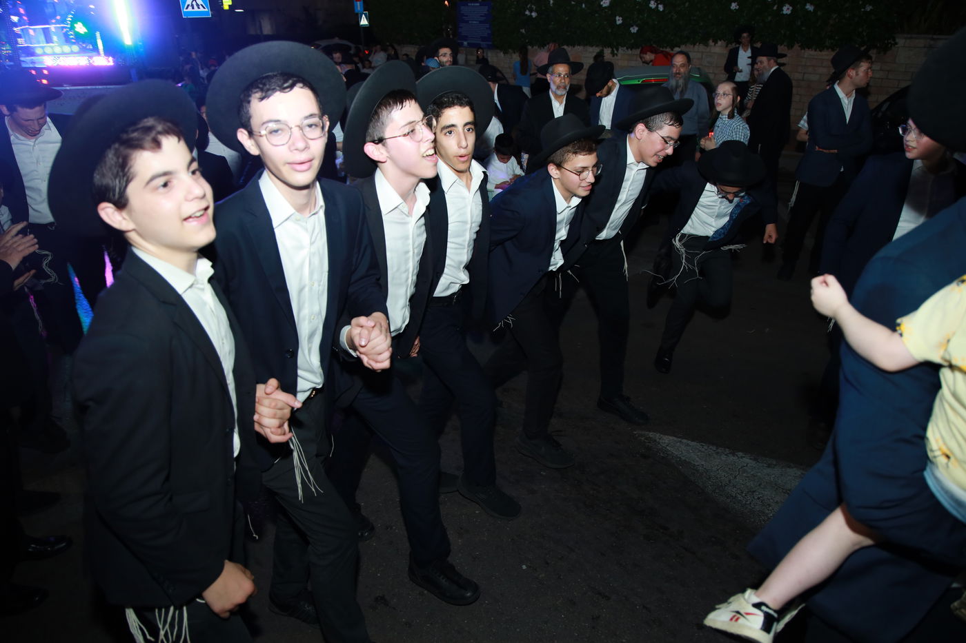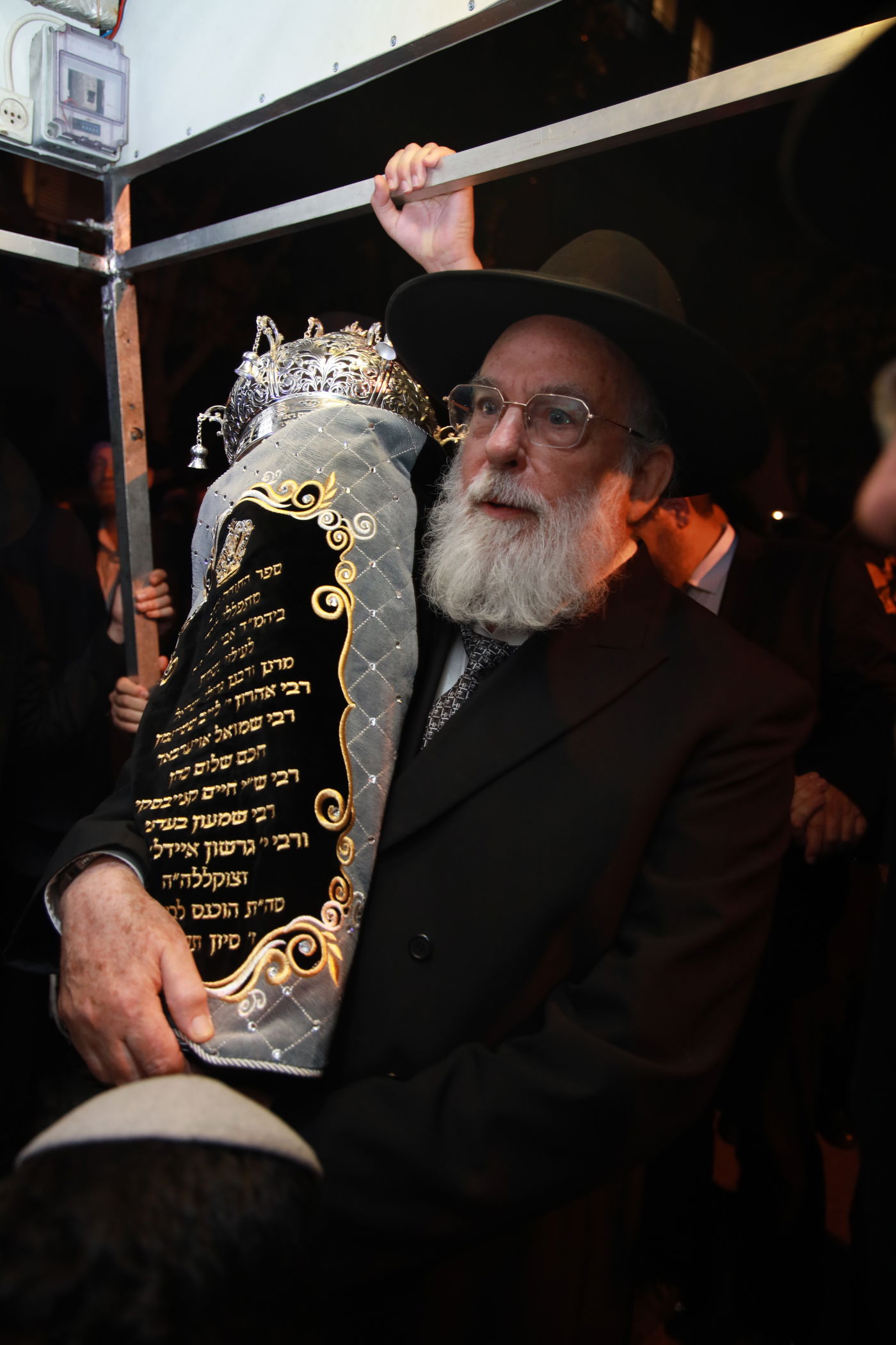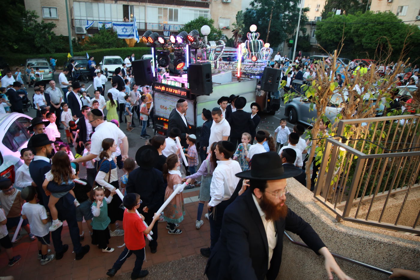 לאחר מכן יצאה התהלוכה ברוב פאר והדר, בשירים ובמחולות, בסיוע היחידה לתרבות חרדית בניהולו של הרב אברהם פקטר, ובליווי מאות מילדי העיר, בני הישיבות ותושבים נרגשים, שרקדו ופיזזו לכבודה של תורה, לכל אורך התהלוכה ברחובות העיר עד לבית המדרש, שם המשיכה שמחת התורה במשך זמן רב.