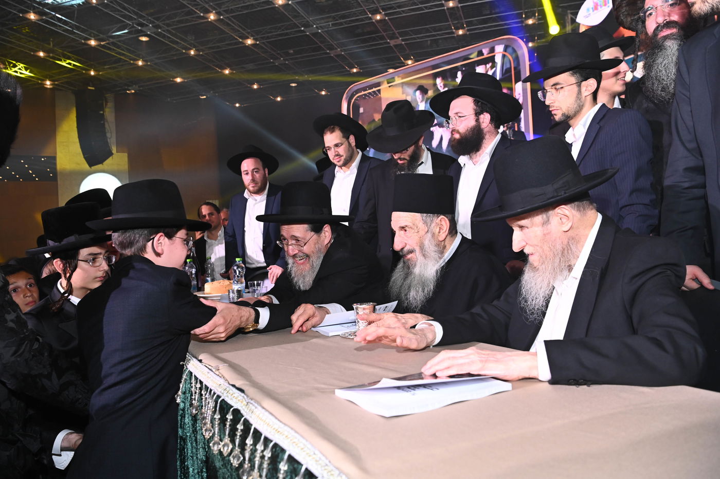 ביוזמת ארגון 'זה לזה', התקיימה ברוב פאר והדר, במעמד גדולי ישראל, שמחת בר מצווה מפוארת לחמישים ילדים יתומים | פרץ של בכי והתרגשות אחז בקהל כאשר חתני השמחה פתחו באמירת 'קדיש' לזכר הוריהם אשר חגגו עמם ביומם הגדול ממרומים | גדולי הדור נשאו דברים לכבודם של חתני התורה, ובהמשך יצאו בריקודים נלהבים (חרדים)
