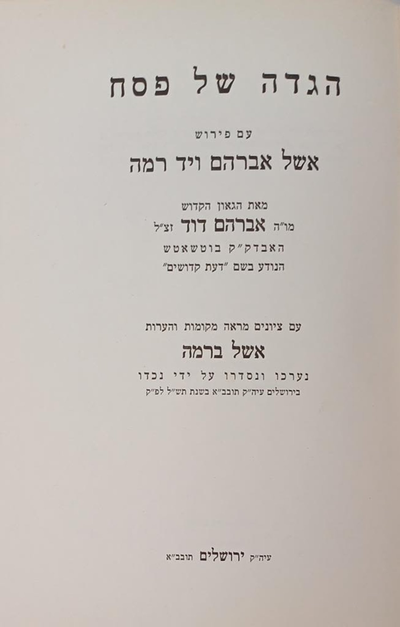 [1] בפירושו אשל ברמה על הגדה של פסח עם פירוש אשל אברהם ויד רמה, ה'תש"ל, דף קכא