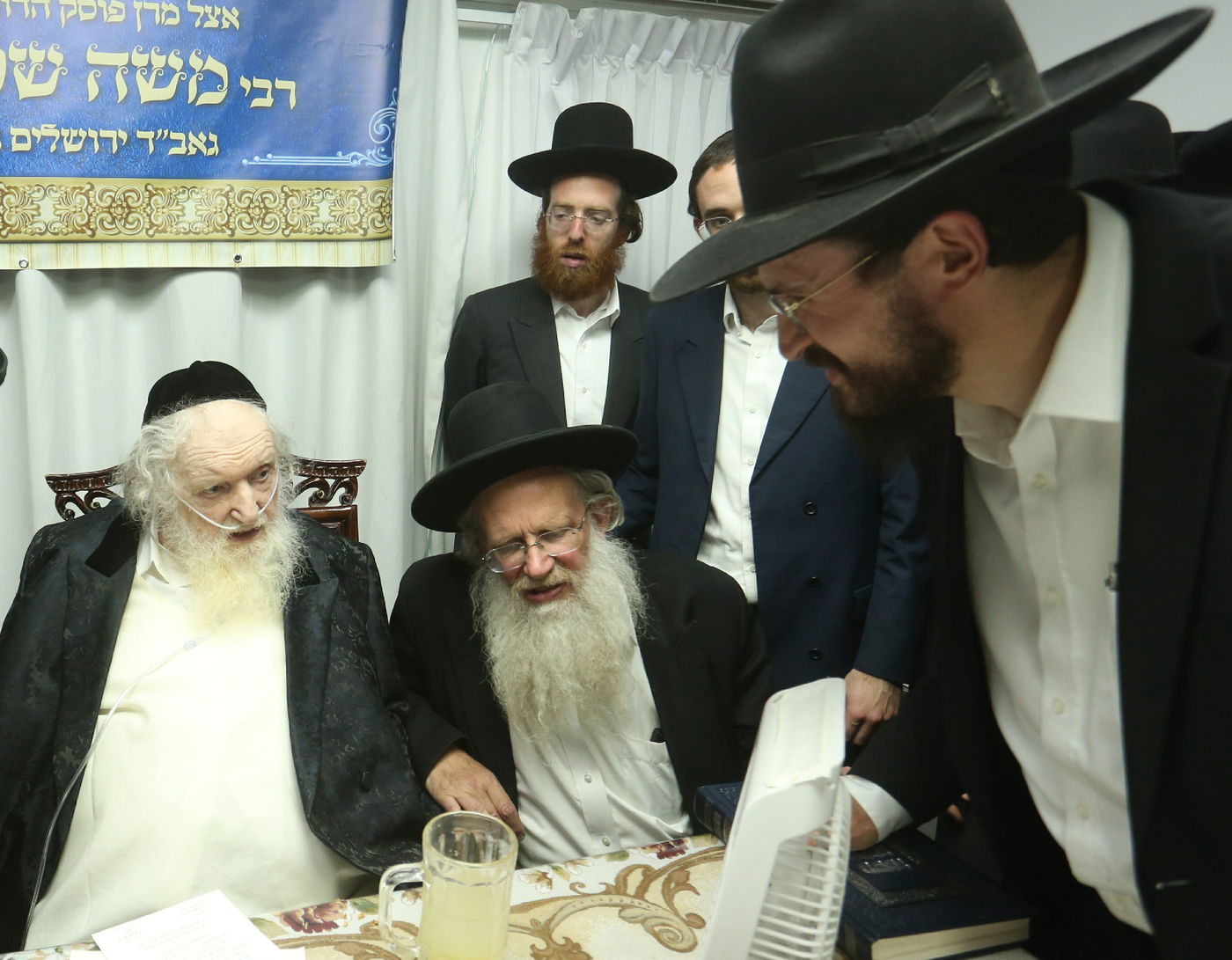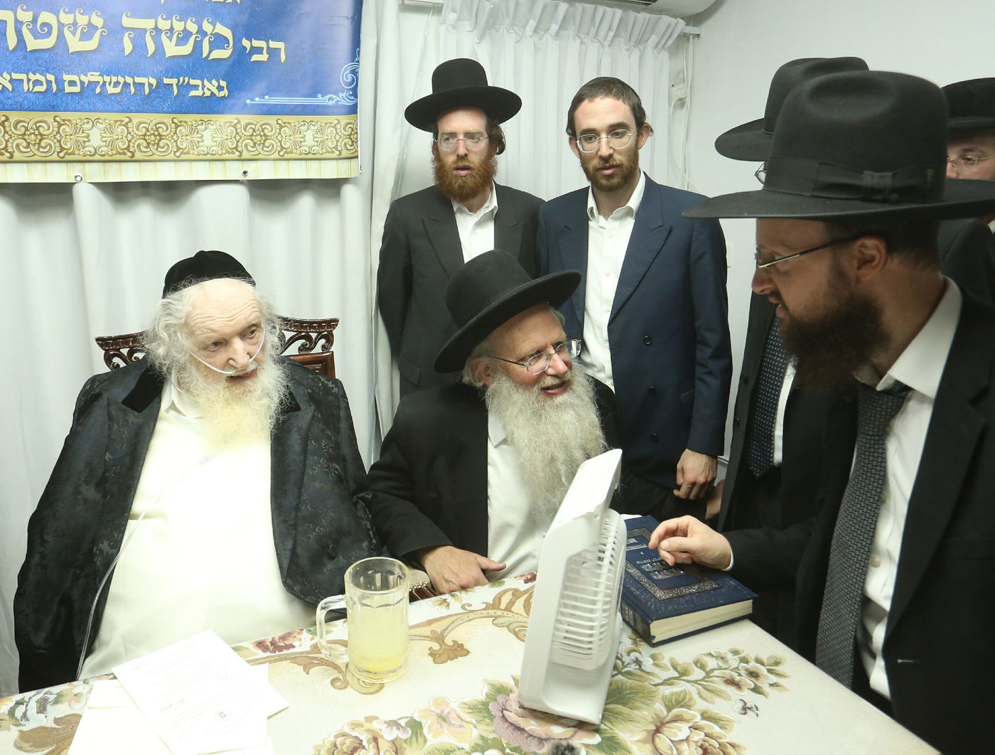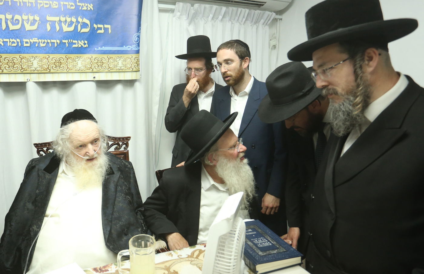 כאמור, מעמד מיוחד התקיים במעונו של נשיא המכון הפוסק הגר"מ שטרנבוך, כאשר בזה אחר זה התאספו ובאו בזמן אחד קרוב למניין רבנים ומורי הוראה, ובהם הגאון רבי פנחס אליהו קירזנר, הגאון רבי מאיר טרגר, הגאון רבי יהודה גנס, הגאון רבי ניסן משה גראס, הגאון רבי אברהם משה דינר, הגאון רבי שלמה וינגרטן, הגאון רבי דוד קעניג, והגאון רבי משה אדלשטיין.