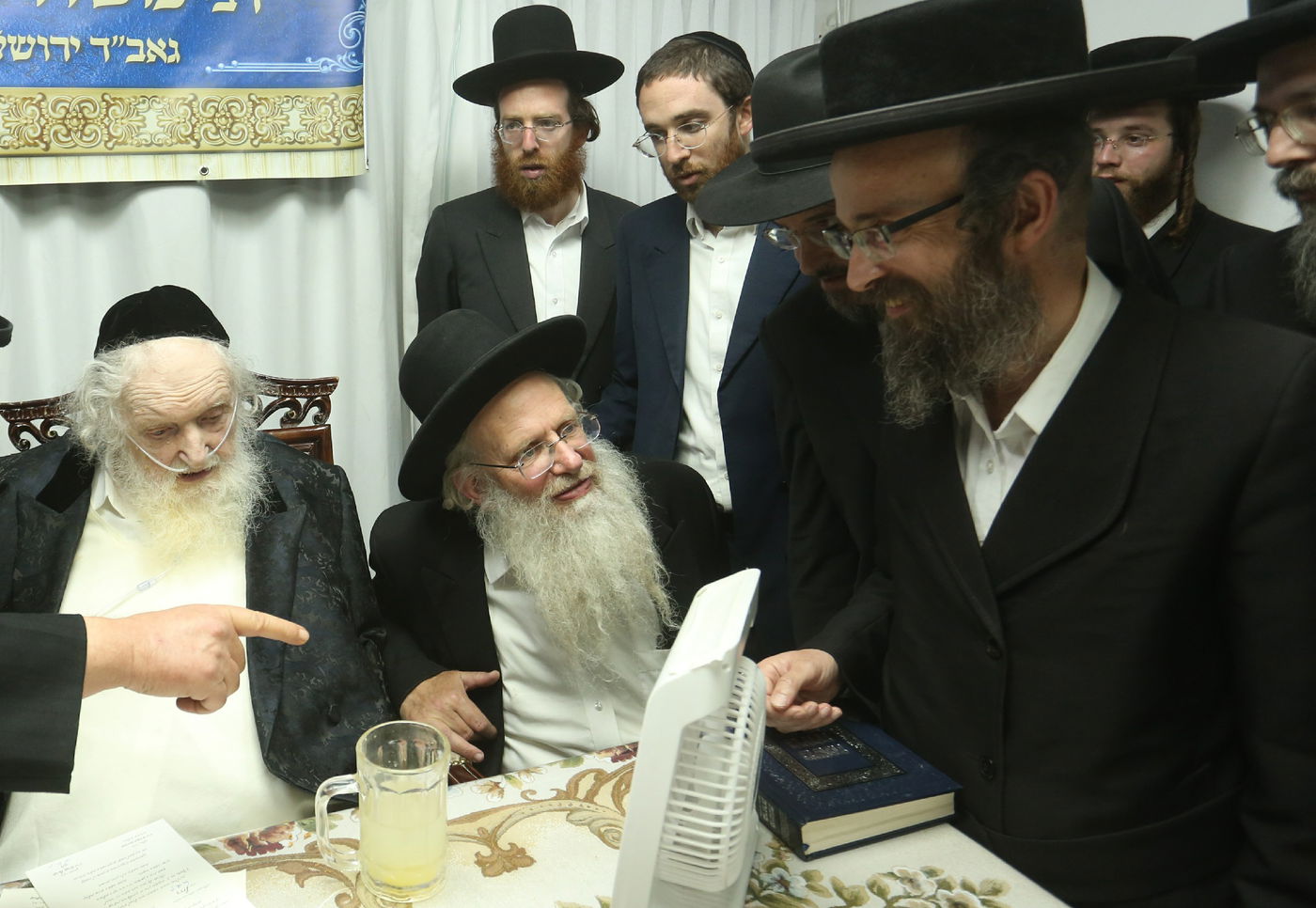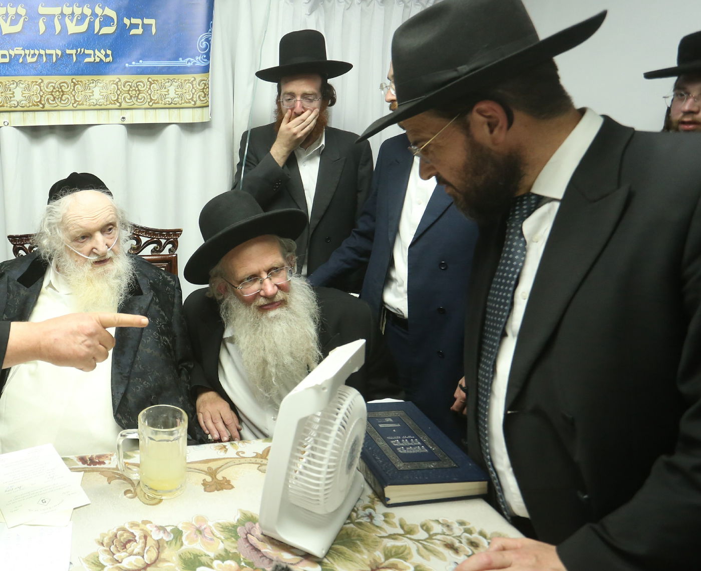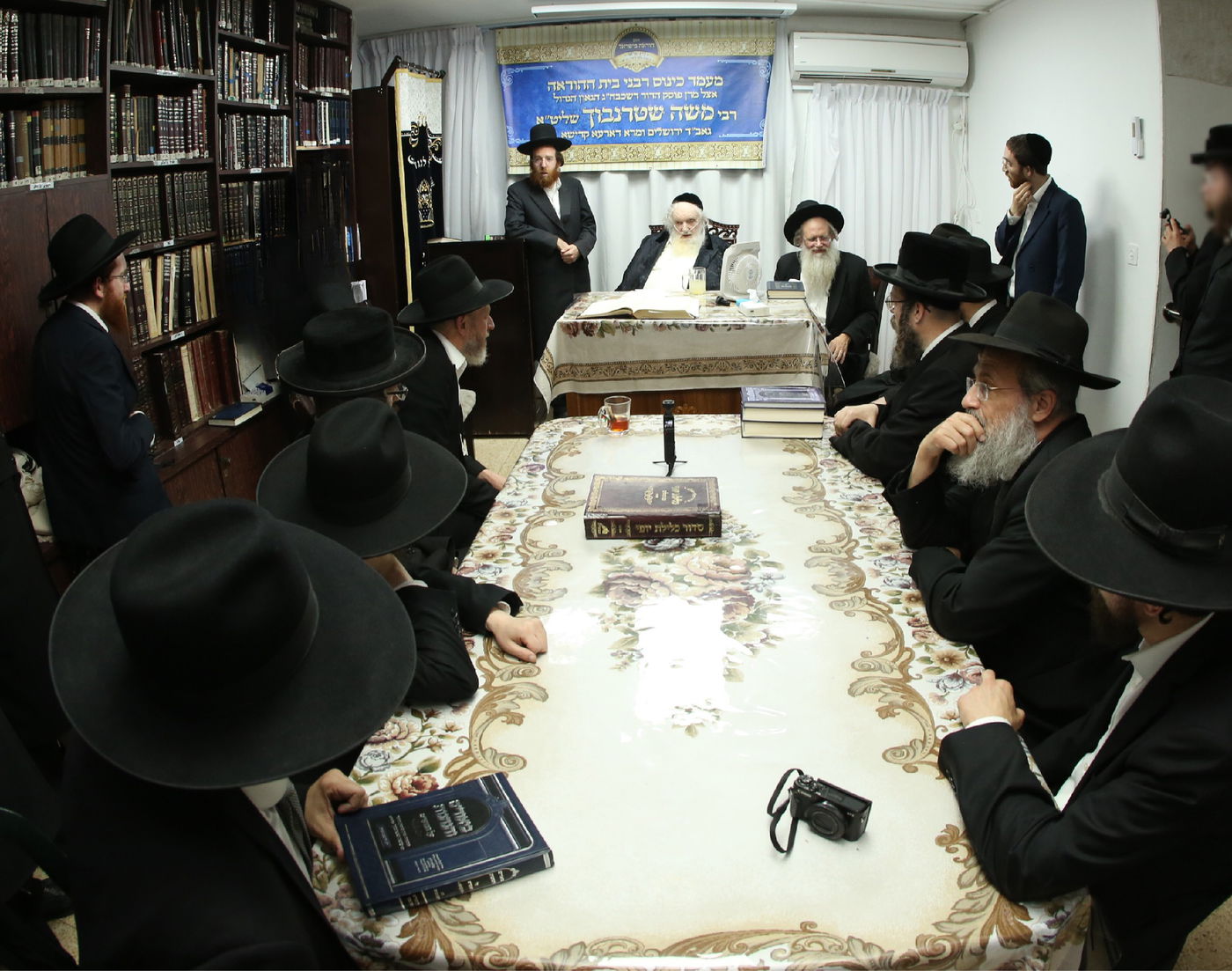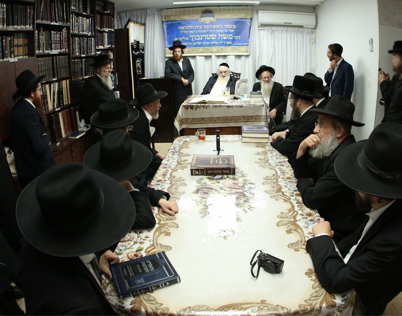 כאמור, מעמד מיוחד התקיים במעונו של נשיא המכון הפוסק הגר"מ שטרנבוך, כאשר בזה אחר זה התאספו ובאו בזמן אחד קרוב למניין רבנים ומורי הוראה, ובהם הגאון רבי פנחס אליהו קירזנר, הגאון רבי מאיר טרגר, הגאון רבי יהודה גנס, הגאון רבי ניסן משה גראס, הגאון רבי אברהם משה דינר, הגאון רבי שלמה וינגרטן, הגאון רבי דוד קעניג, והגאון רבי משה אדלשטיין.