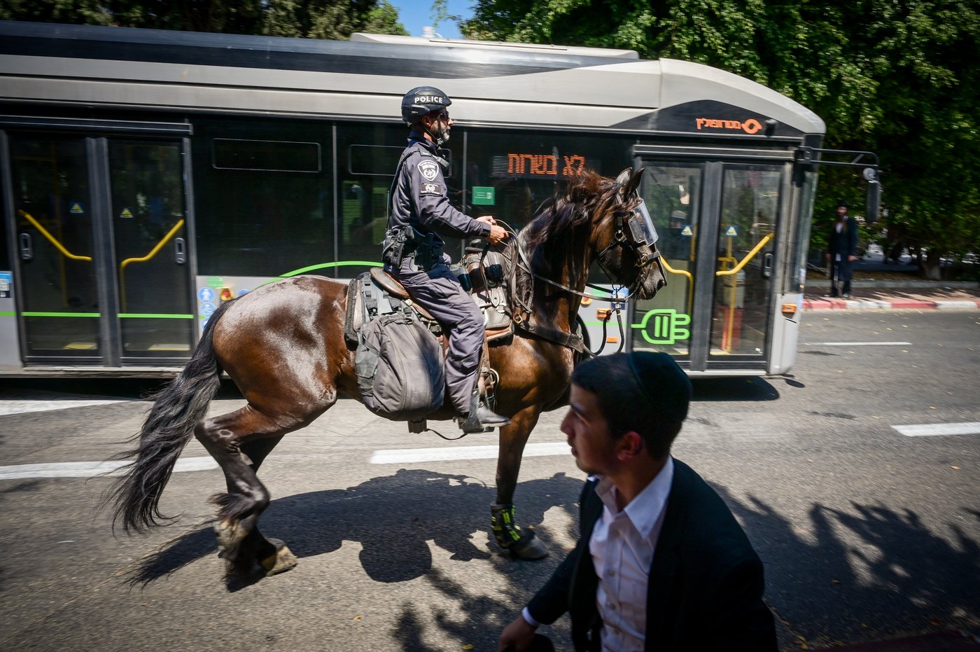 עשרות מאנשי 'הפלג הירושלמי' הפגינו במשך שעות סמוך ללשכת הגיוס בתל השומר | המשטרה הפעילה פרשים ועצרה שבעה מפגינים שהפרו את הסדר | כלל הצירים נפתחו לתנועה | תיעוד (חרדים)