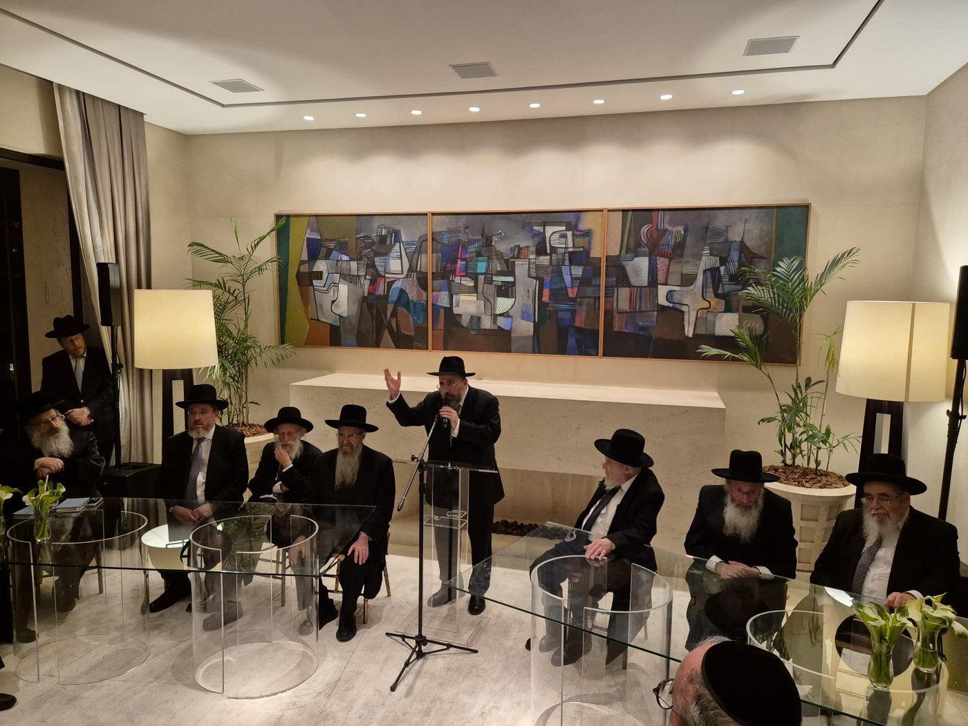 לאחר תפילת שחרית, התכנסו בני הקהילה באולם הסמוך לבית הכנסת למעמד קבלת פנים מיוחד. במהלך האירוע, נשאו גדולי ישראל דברים בפני הקהל. הרבנים הדגישו את חשיבות החזקת התורה והזכות להשתתף בקרן התמיכה. כמו כן, התייחסו למצב הנוכחי בארץ ישראל, תוך שימת דגש על האתגרים העכשוויים.