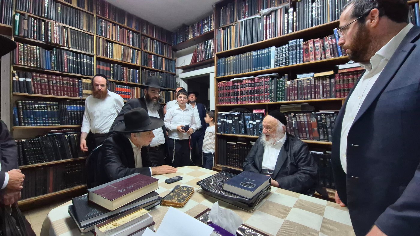 מתכוננים לחג: במעונו של ראש הישיבה נערכו חזרות לתקיעת שופר - אותן ישמעו אלפי המתפללים בישיבת פוניבז'.