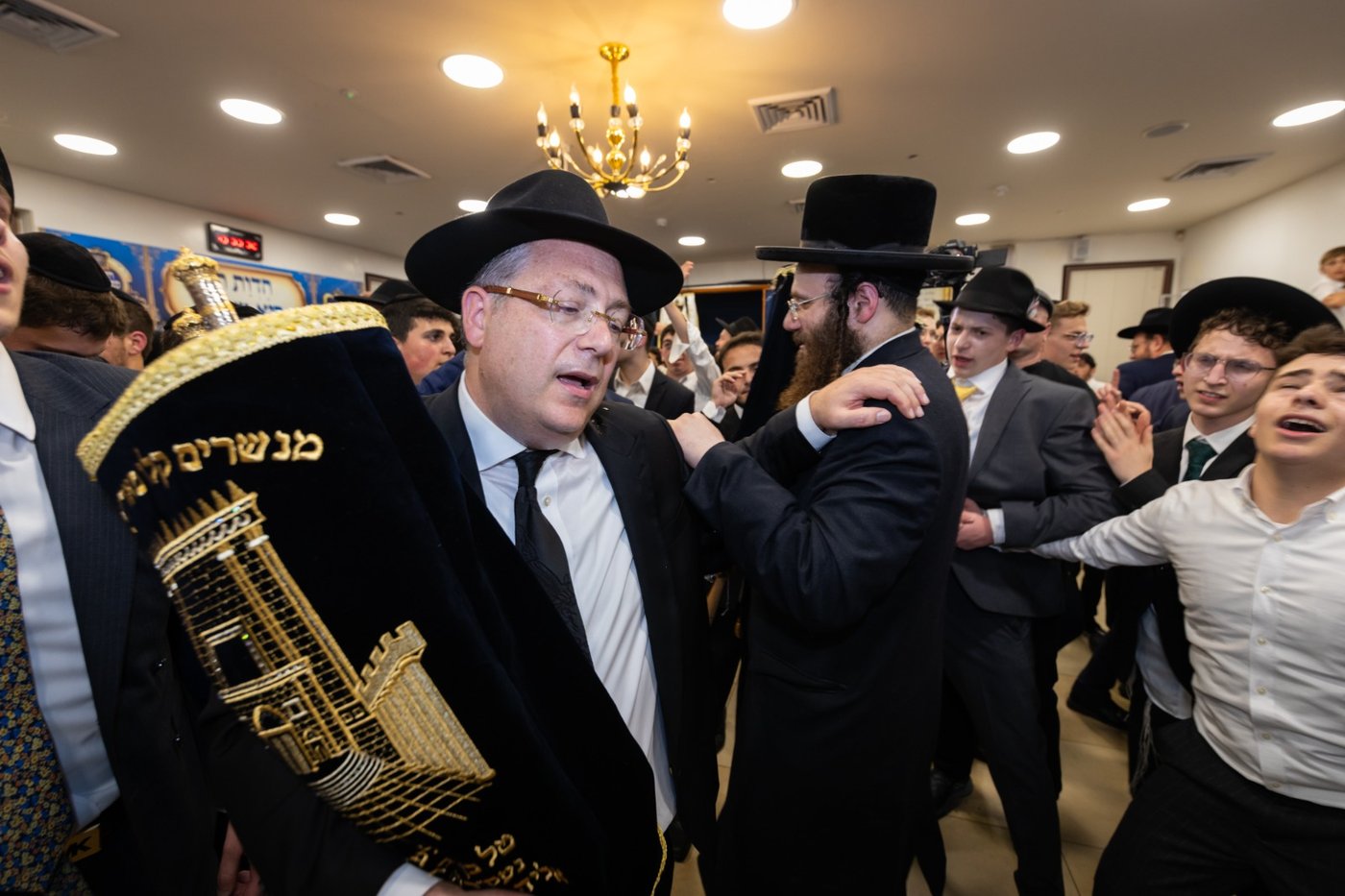 המעמד המרגש של הכנסת ספר התורה (צילום: שניאור שיף, עריכה: גולדי וובר)