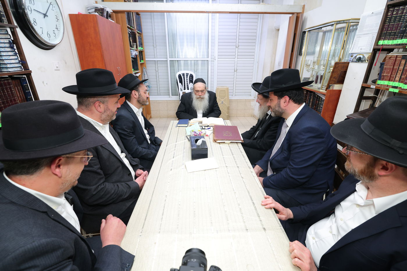 לקראת המעמד המרגש, נכנסו הערב (שני) רב הקהילה הפוסק הגאון רבי בן ציון קוק, הנגיד הרבני ר' שמואל לינצר, גבאי וראשי הקהילה, למעונם של גדולי ישראל בבני ברק, להזמינם למעמד המיוחד ולקבל את ברכת הדרך למשכן החדש.